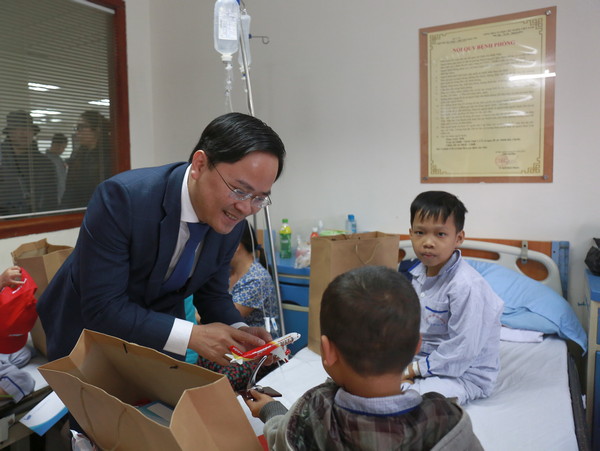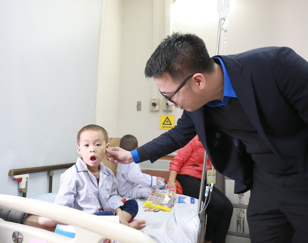 Bí thư thường trực T.Ư Đoàn Nguyễn Anh Tuấn thăm hỏi và tặng quà các bệnh nhi đang điều trị tại Viện Huyết học và Truyền máu Trung ương.
