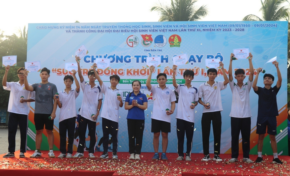 Dịp này, thông qua chương trình chạy bộ, Hội Doanh nhân trẻ tỉnh Bến Tre đã trao tặng 20 suất học bổng cho học sinh, sinh viên có hoàn cảnh khó khăn.