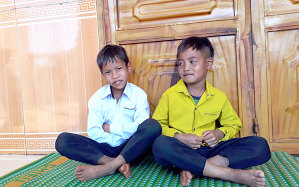 Gơng (áo vàng) đã dũng cảm cứu bạn là Buynh (áo trắng) khỏi đuối nước |