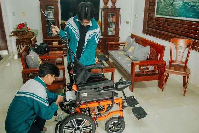 Sản phẩm xe lăn của Hiếu và Quân có thể giúp người bệnh di chuyển được nhiều nơi và giao tiếp