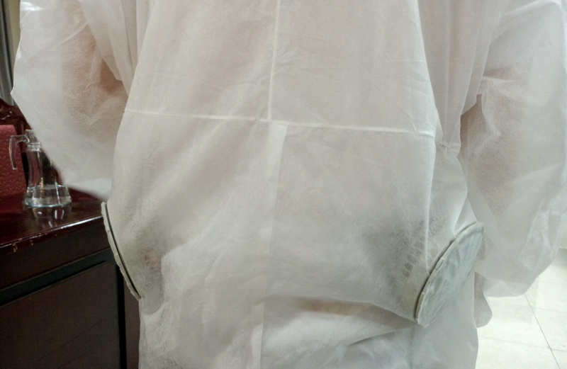Trên cơ sở bộ trang phục bảo hộ chuyên dùng của các y bác sỹ, các em đã cải tiến thêm hệ thống làm mát là 2 chiếc quạt chạy bằng pin gắn vào phía bên trong của đồ bảo hộ, đảm bảo an toàn cho người sử dụng.