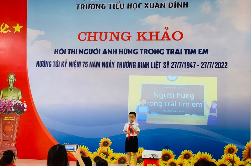 Đồng thời, Trường Tiểu học Xuân Đỉnh tổ chức cuộc thi “Người anh hùng trong trái tim em” dành cho các em học sinh trong trường. Các em tham gia cuộc thi bằng cách làm video (clip) giới thiệu, nêu cảm nghĩ về một người anh hùng để lại nhiều ấn tượng và cảm xúc mà các em đã được học, được đọc qua sách báo hay xem trên truyền hình.