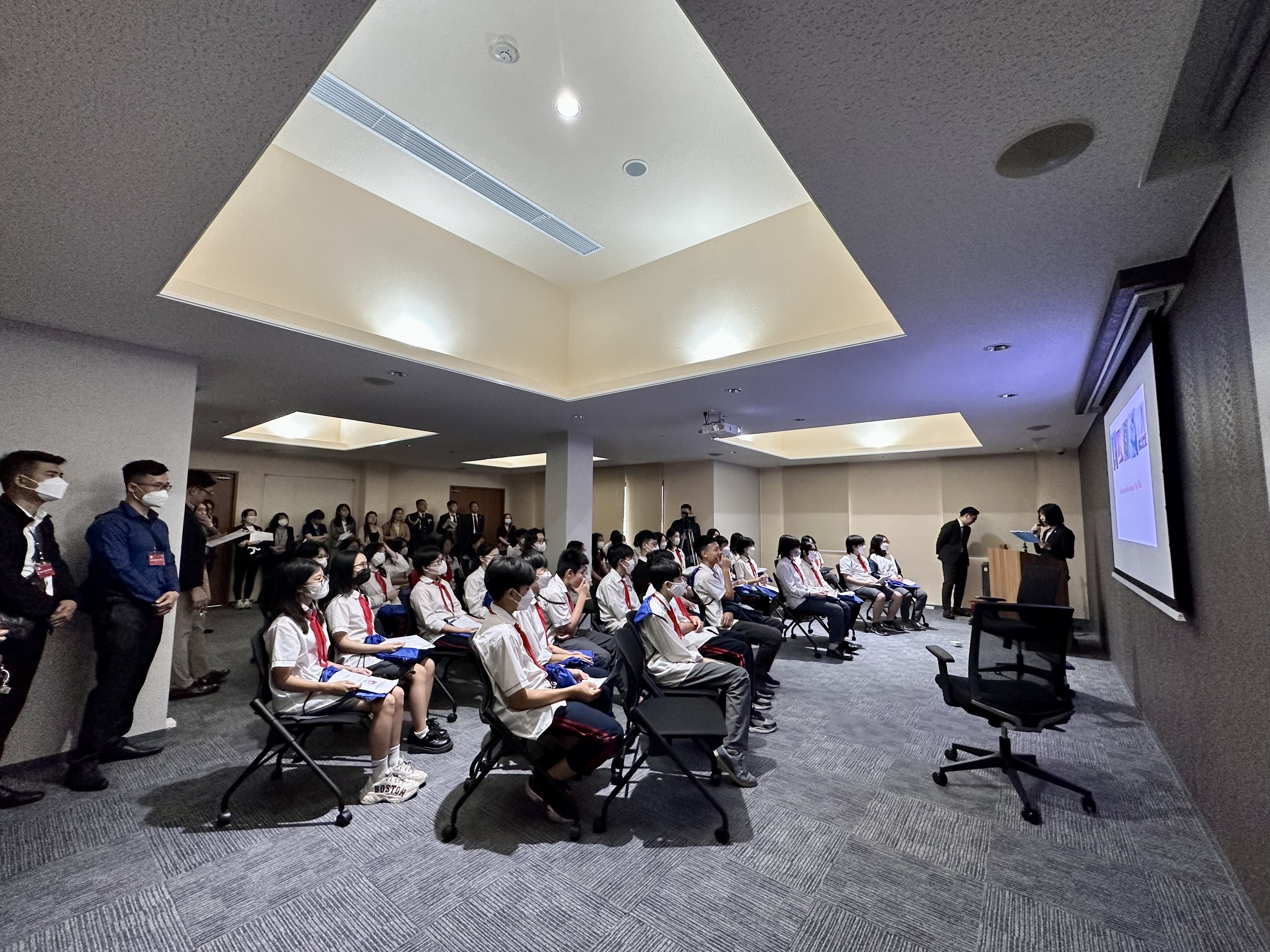 Sau trò chơi, học sinh chia làm 5 nhóm để giao lưu cùng các cán bộ phụ trách các mảng của Đại sứ quán để tìm hiểu về mô hình hoạt động của Đại sứ quán Nhật Bản tại Việt Nam. Các bạn học sinh còn được tham quan và tìm hiểu mô hình hoạt động của Trung tâm thông tin văn hoá Nhật Bản, nghe giới thiệu về trang phục Kimono truyền thống của Nhật Bản, mặc thử Yukata và thăm nhà riêng của Ngài Đại sứ Nhật Bản tại Việt Nam.