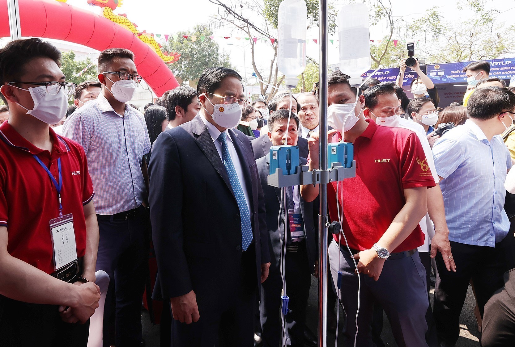 Ủy viên Bộ Chính trị, Thủ tướng Chính phủ Phạm Minh Chính tham quan trưng bày Cuộc thi “Học sinh, sinh viên với ý tưởng khởi nghiệp” (SV_STARTUP)_Ảnh: TTXVN