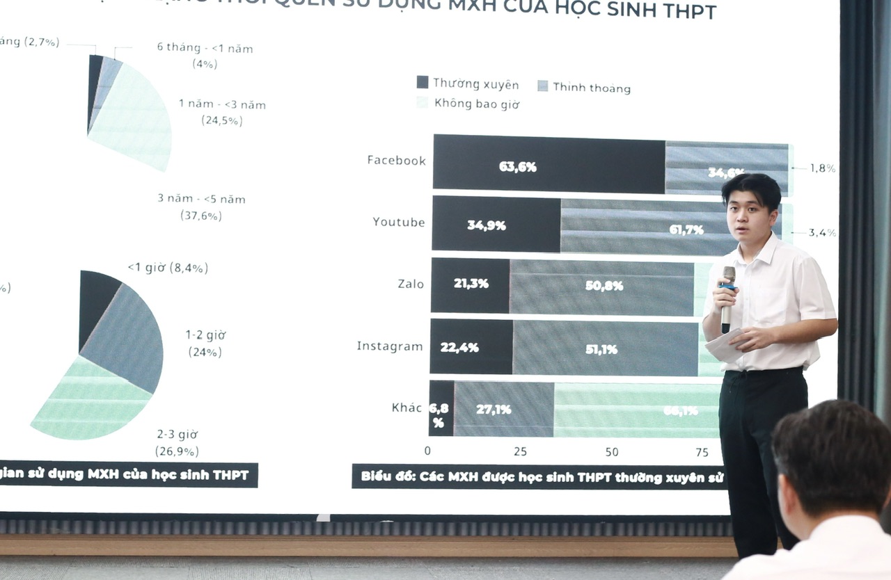 Tuy nhiên, nhận thức của học sinh về tác động tiêu cực của mạng xã hội vẫn còn hạn chế. Họ cũng thiếu hiểu biết đúng đắn về biểu hiện, hậu quả và cách ứng phó với những tình huống tiêu cực trên mạng xã hội.