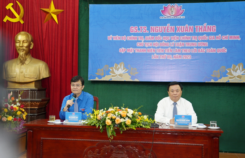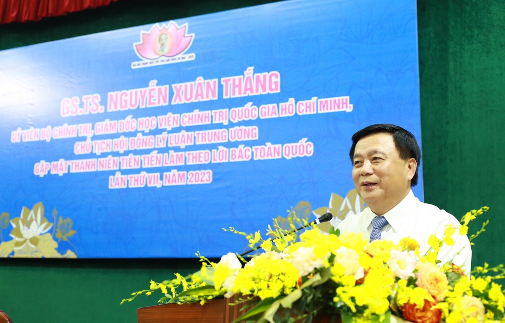 Sáng 26/9, GS.TS. Nguyễn Xuân Thắng - Ủy viên Bộ Chính trị, Giám đốc Học viện Chính trị Quốc gia Hồ Chí Minh, Chủ tịch Hội đồng Lý luận Trung ương đã gặp gỡ các đại biểu thanh niên tham dự Đại hội Thanh niên tiên tiến làm theo lời Bác lần thứ VII, năm 2023.