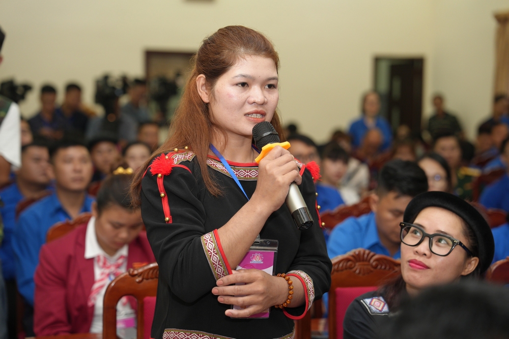 Đại biểu Nguyễn Thị Thu Hoa, Giám đốc Công ty cổ phần sản xuất và thương mại Trường Foods chia sẻ về hành trình khởi nghiệp từ năm 18 tuổi với sản phẩm thịt chua của chính quê hương mình. Hiện sản phẩm thịt chua của Trường Foods đã có mặt trên toàn quốc với hơn 10.000 điểm bán, giải quyết công ăn việc làm cho hàng trăm người dân.