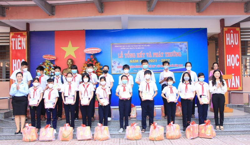 Cụ thể, tại chương trình, Hội đồng Đội Trung ương - Hội đồng Đội tỉnh Bình Dương đã trao tặng 20 suất học bổng cho các em học sinh có hoàn cảnh khó khăn của trường THCS Nguyễn Thị Minh Khai. Hi vọng rằng với những phần quà ý nghĩa này sẽ giúp các em phần nào vượt qua những khó khăn trước mắt và tiếp tục cố gắng phấn đấu, nỗ lực học tập để đạt được những kết quả tốt sau này.