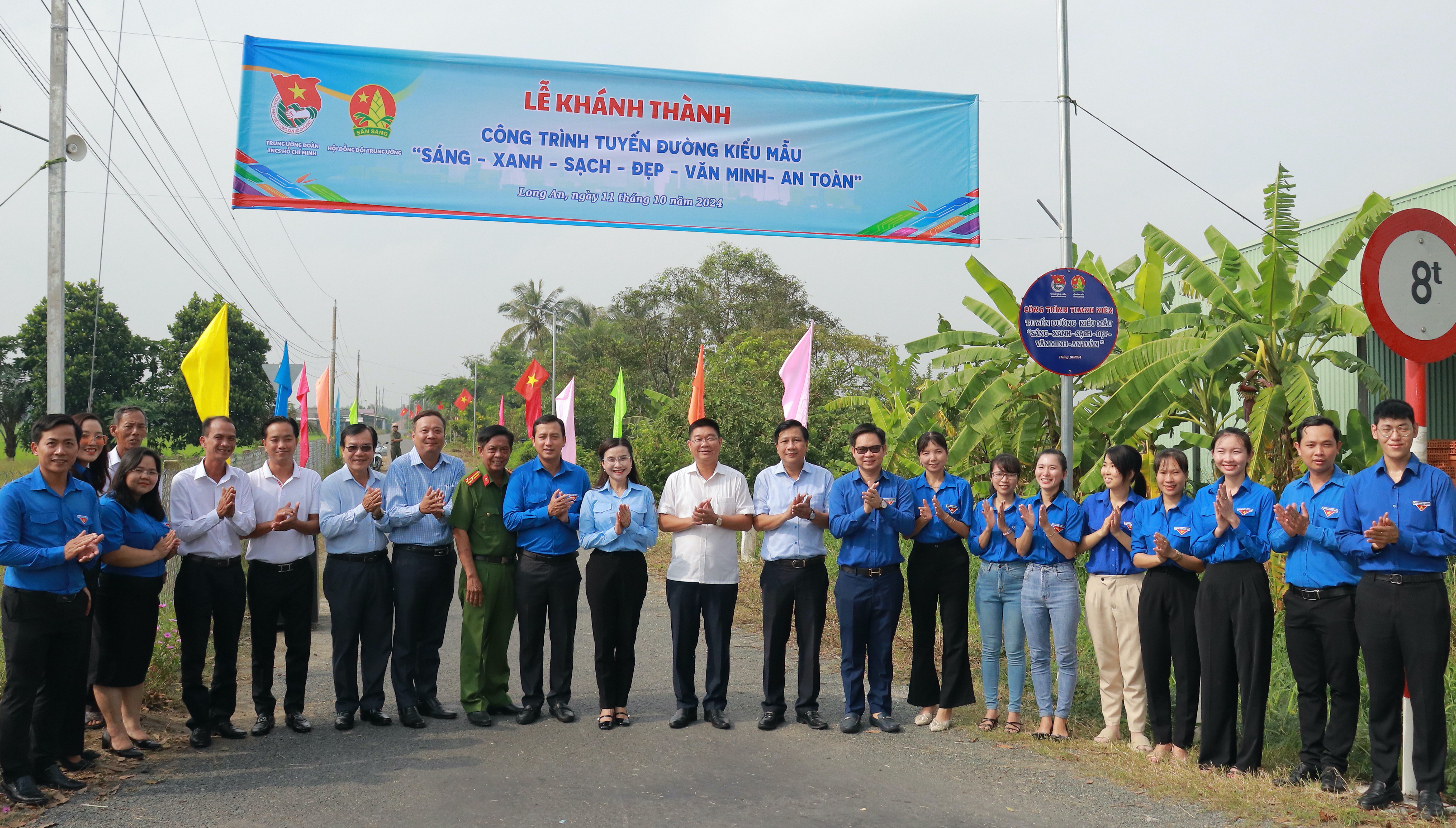 Đồng chí Nguyễn Phạm Duy Trang cùng các ban chuyên môn Tỉnh đoàn, Hội đồng Đội tỉnh Long An (các ban, ngành, đoàn thể địa phương) sải bước trên con đường khang trang.