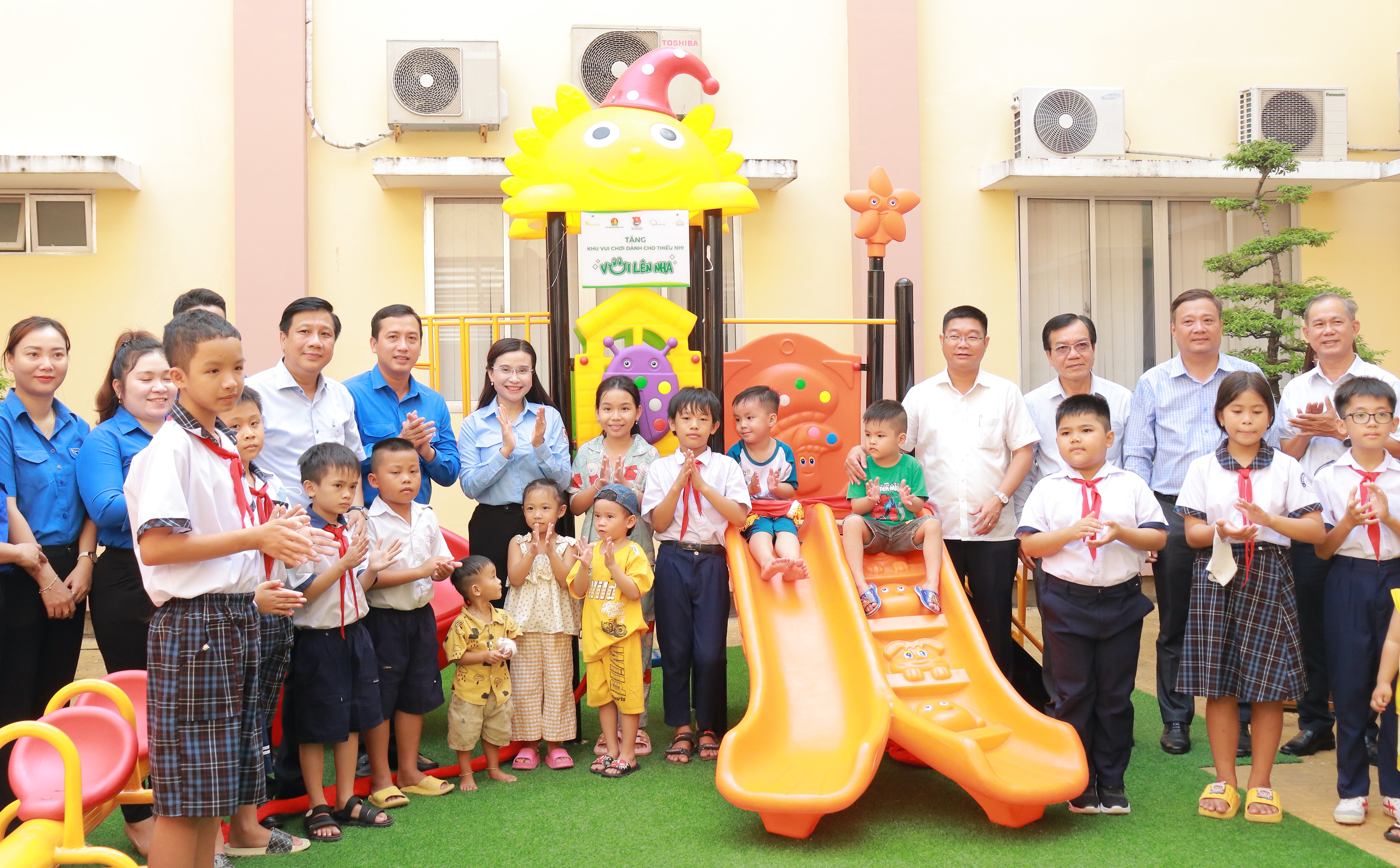 Công trình khu vui chơi cho thiếu nhi tại Trung tâm Y tế huyện Tân Trụ (Long An) bao gồm 1 bộ cầu trượt liên hoàn, 1 bộ đu quay 4 chỗ, 1 thú nhún compposite, 1 bập bênh với tổng trị giá 40 triệu đồng. Công trình góp phần giúp các em thiếu nhi có thêm địa điểm vui chơi, nghỉ ngơi; đồng thời, giúp các em phát triển toàn diện cả về thể chất và tinh thần.
