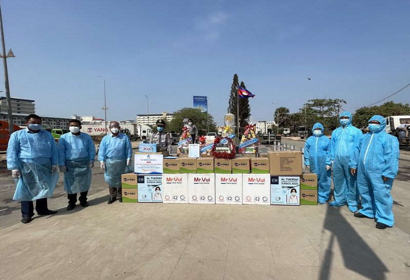 Đoàn công tác trao khẩu trang và nước rửa tay đến Hội LHTN tỉnh Svay Rieng