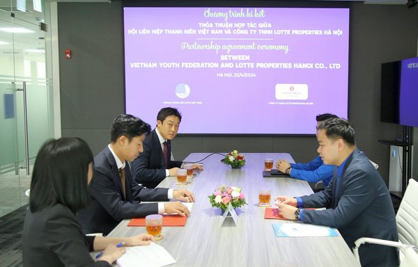 Lãnh đạo Trung ương Hội Liên hiệp thanh niên Việt Nam và Công ty TNHH Lotte Properties Hà Nội đã kí kết thỏa thuận hợp tác