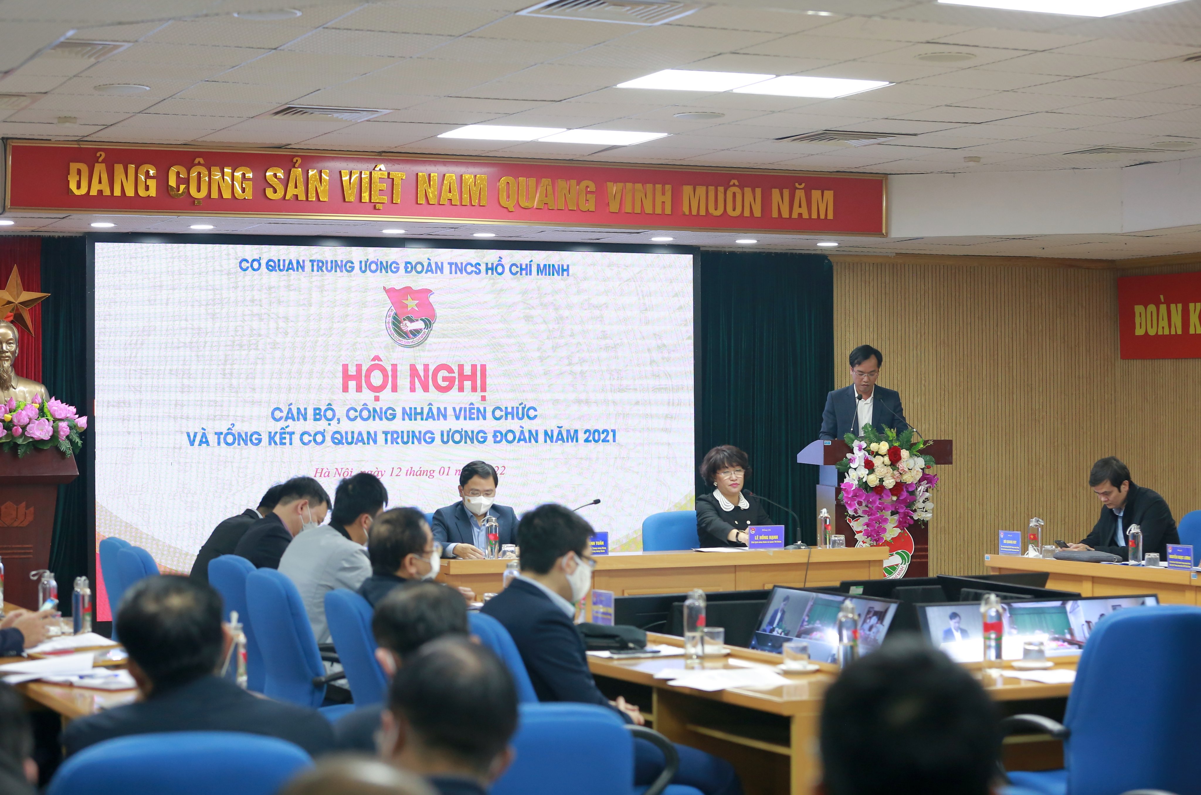 Đồng chí cũng cho biết đó là một năm nhịp điệu sôi động bởi có khoảng 5.000 đầu việc, ở tất cả các ban, đơn vị của T.Ư Đoàn. “Trong 360 ngày thì có khoảng một nửa thời gian phải nghỉ giãn cách, phải làm việc ở nhà, làm việc trực tuyến. Điều đó cho thấy nhịp điệu sôi động như thế nào. Có thời điểm tôi thấy không thở được, nhất là tháng 3 khi tổ chức kỷ niệm 90 năm thành lập Đoàn. Khối lượng công việc nhiều quá, nên đến 11 giờ đêm nhiều phòng còn sáng đèn. Vậy nhưng chúng ta vẫn hoàn thành với kết quả tốt, được đánh giá cao”, đồng chí chia sẻ