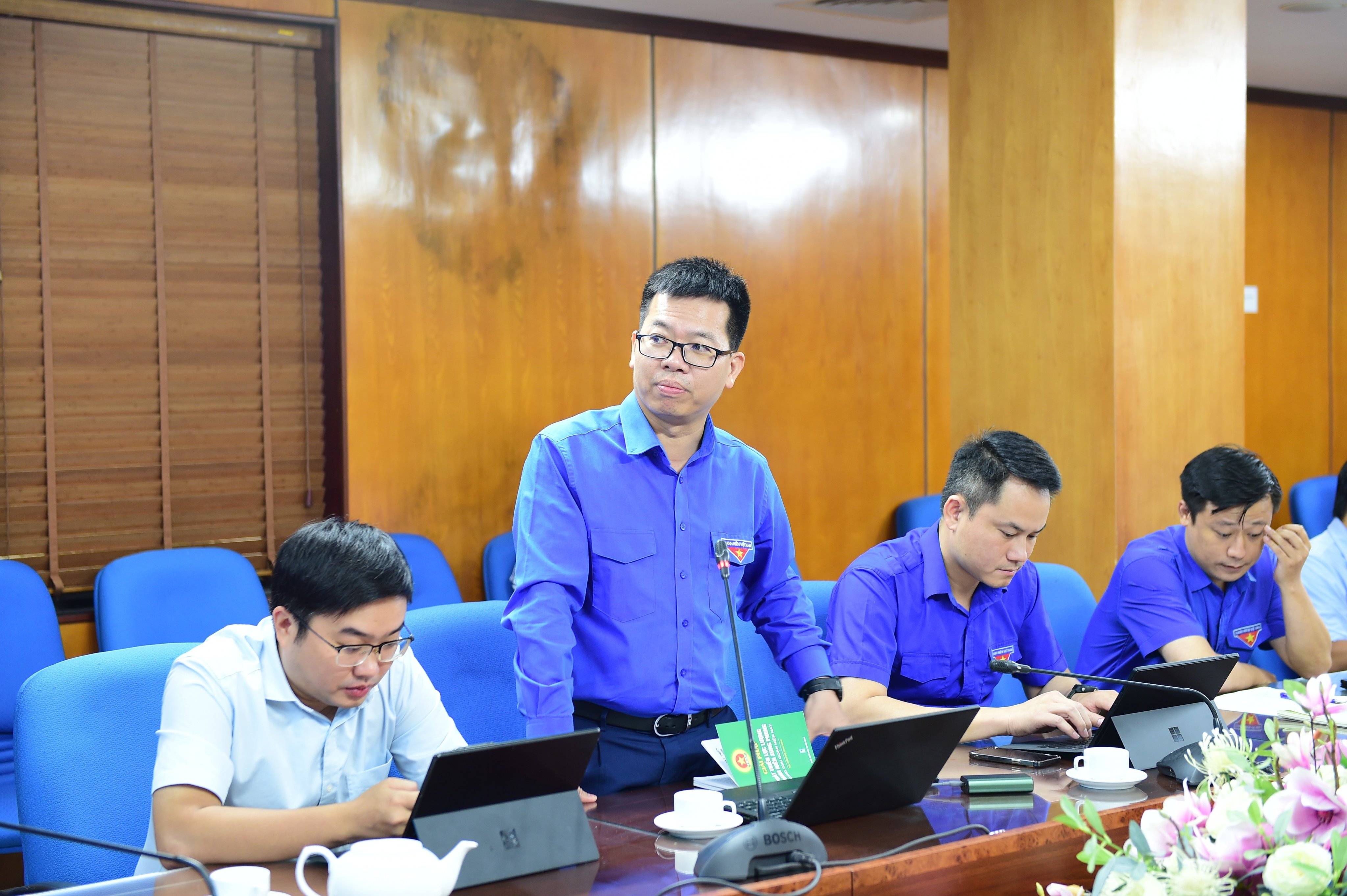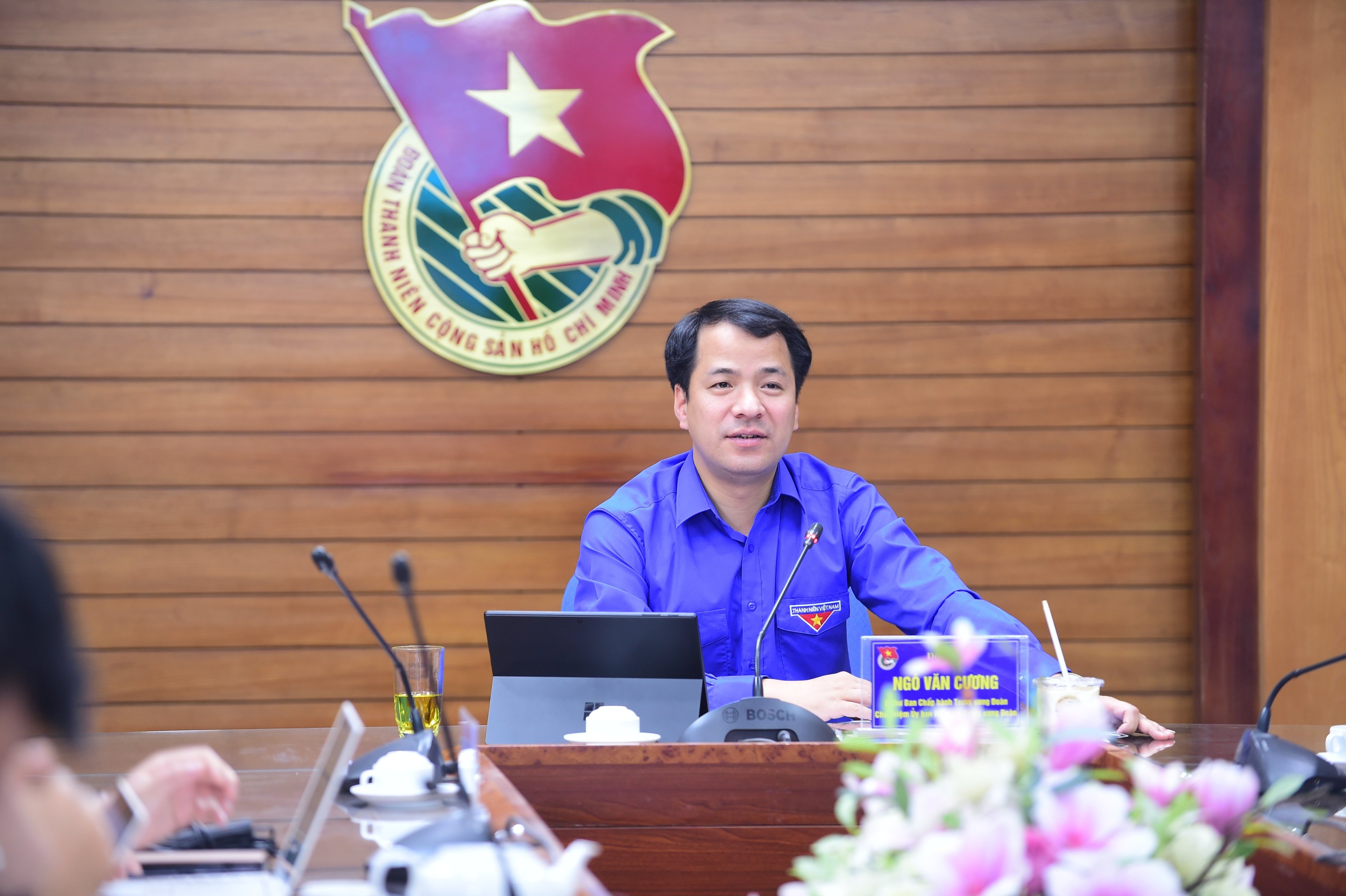 Đồng chí Ngô Văn Cương, Bí thư Trung ương Đoàn, Chủ nhiệm Uỷ ban Kiểm tra Trung ương Đoàn chủ trì hội nghị tại điểm cầu Trung ương Đoàn