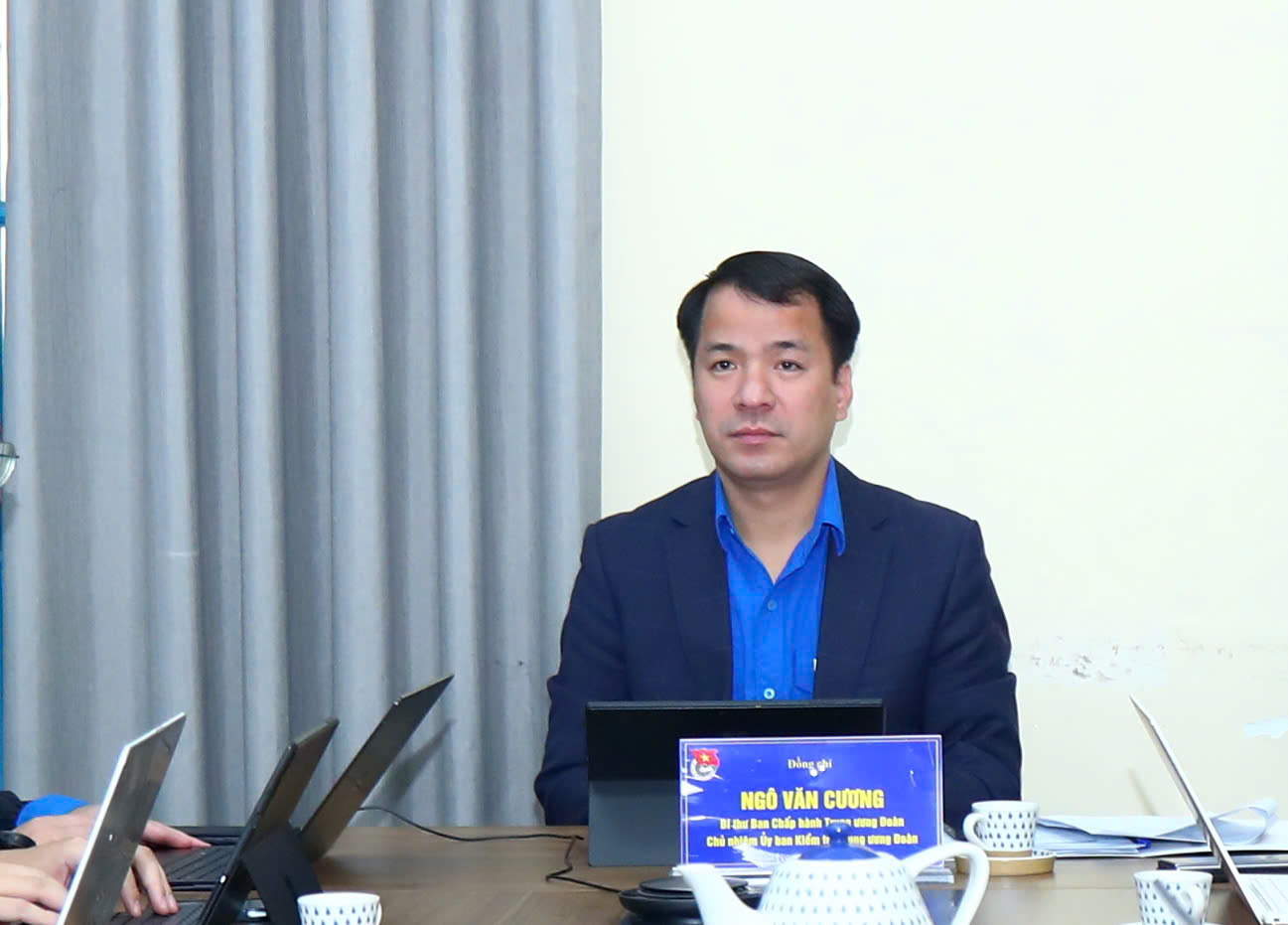 Đồng chí Ngô Văn Cương - Bí thư Trung ương Đoàn, Chủ nhiệm Uỷ ban kiểm tra Trung ương Đoàn chỉ đạo tại điểm cầu Trung ương