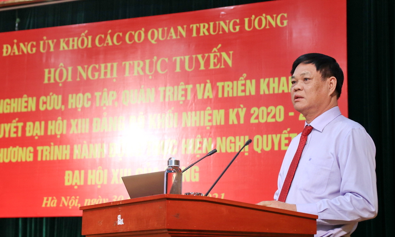 Việc nghiên cứu, học tập, quán triệt, tuyên truyền và triển khai thực hiện Nghị quyết Đại hội XIII của Đảng và Nghị quyết Đại hội XIII của Đảng bộ Khối các cơ quan Trung ương là công việc thường xuyên, phải được thực hiện một cách nghiêm túc, bài bản, khoa học trong suốt nhiệm kỳ và là một nhiệm vụ trọng tâm của năm 2021.