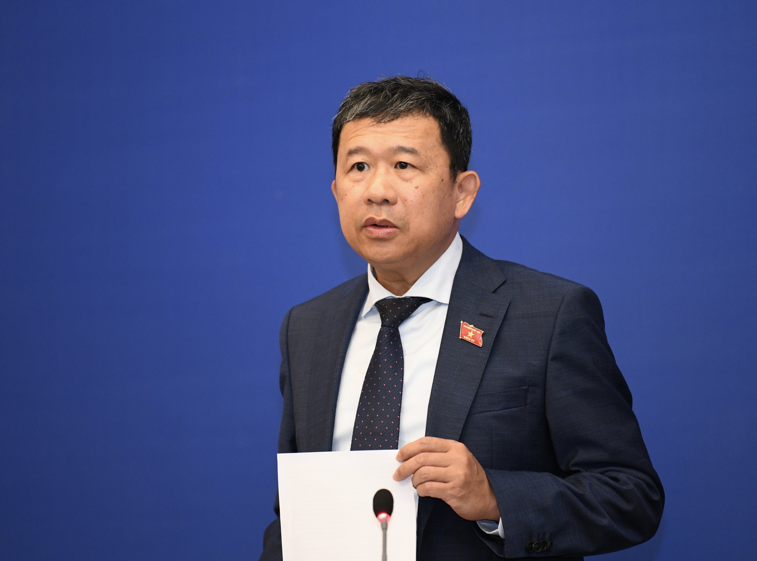 Đồng chí Bùi Văn Cường- Tổng Thư ký Quốc hội, Chủ nhiệm Văn phòng Quốc hội, Phó Trưởng Ban Tổ chức Hội nghị phát biểu tại Họp báo