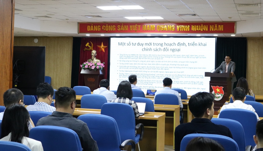 Tại Hội nghị, TS. Vũ Lê Thái Hoàng - Viện trưởng Viện Nghiên cứu chiến lược ngoại giao, Học viện Ngoại giao, Bộ Ngoại giao đã trao đổi những thông tin cơ bản và cập nhật về Các vấn đề toàn cầu hiện nay và chính sách đối ngoại Việt Nam.