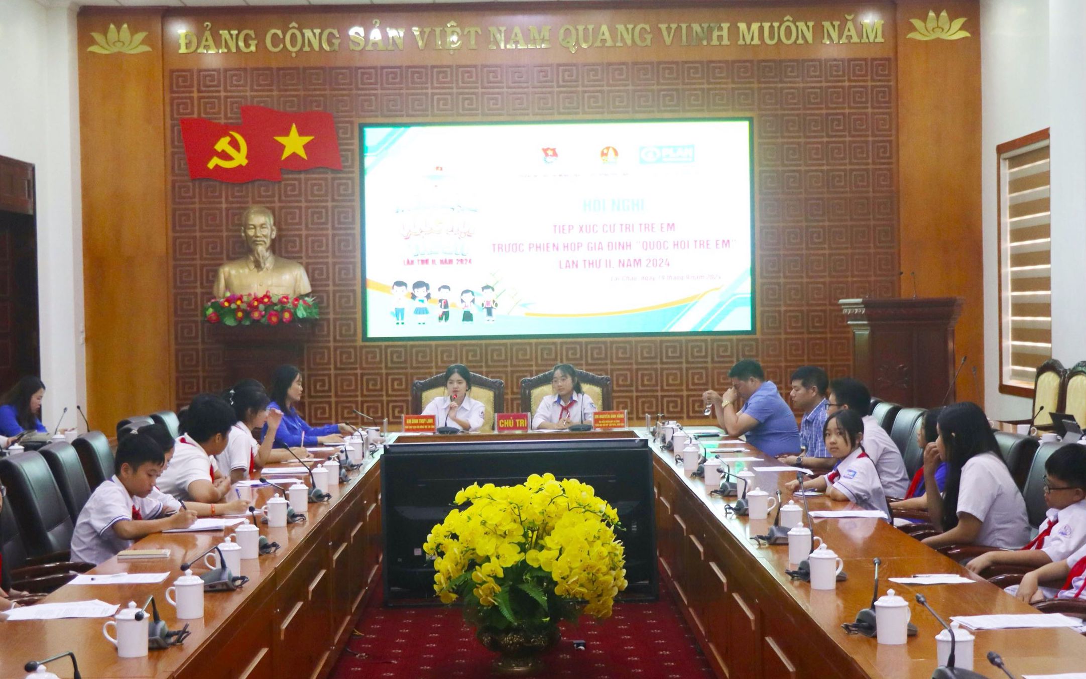 Tại hội nghị, Đoàn Đại biểu thiếu nhi tỉnh tham gia phiên họp giả định “Quốc hội trẻ em” lần thứ II, năm 2024 đã được tập huấn; báo cáo về tình hình vấn đề “Phòng, chống bạo lực học đường, tạo môi trường an toàn cho trẻ em” và “Phòng, chống tác hại của thuốc lá, chất kích thích trong môi trường học đường” tại địa phương; thực trạng, nguyên nhân và đề xuất giải pháp.