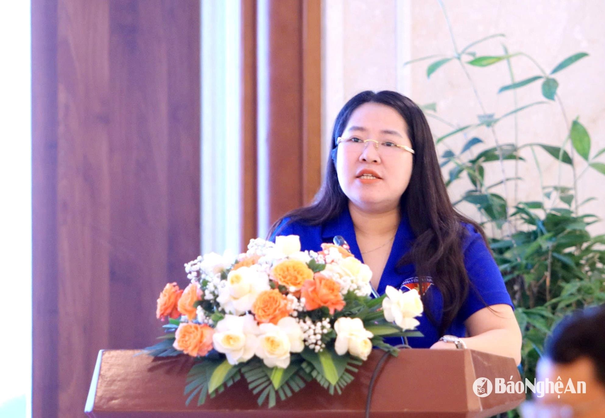 Đồng chí Nguyễn Thị Phương Thúy, Bí thư Tỉnh đoàn Nghệ An phát biểu tại hội nghị