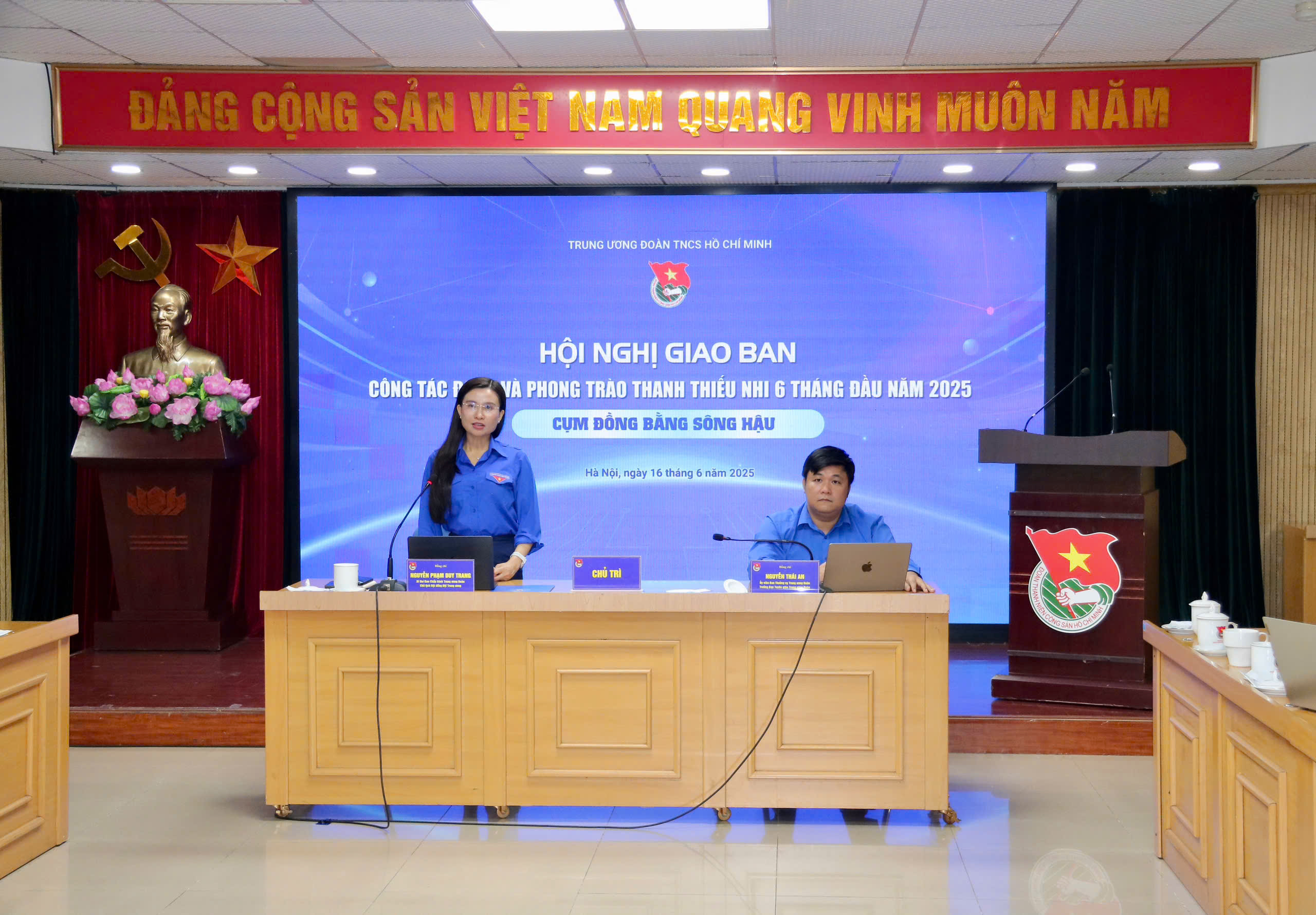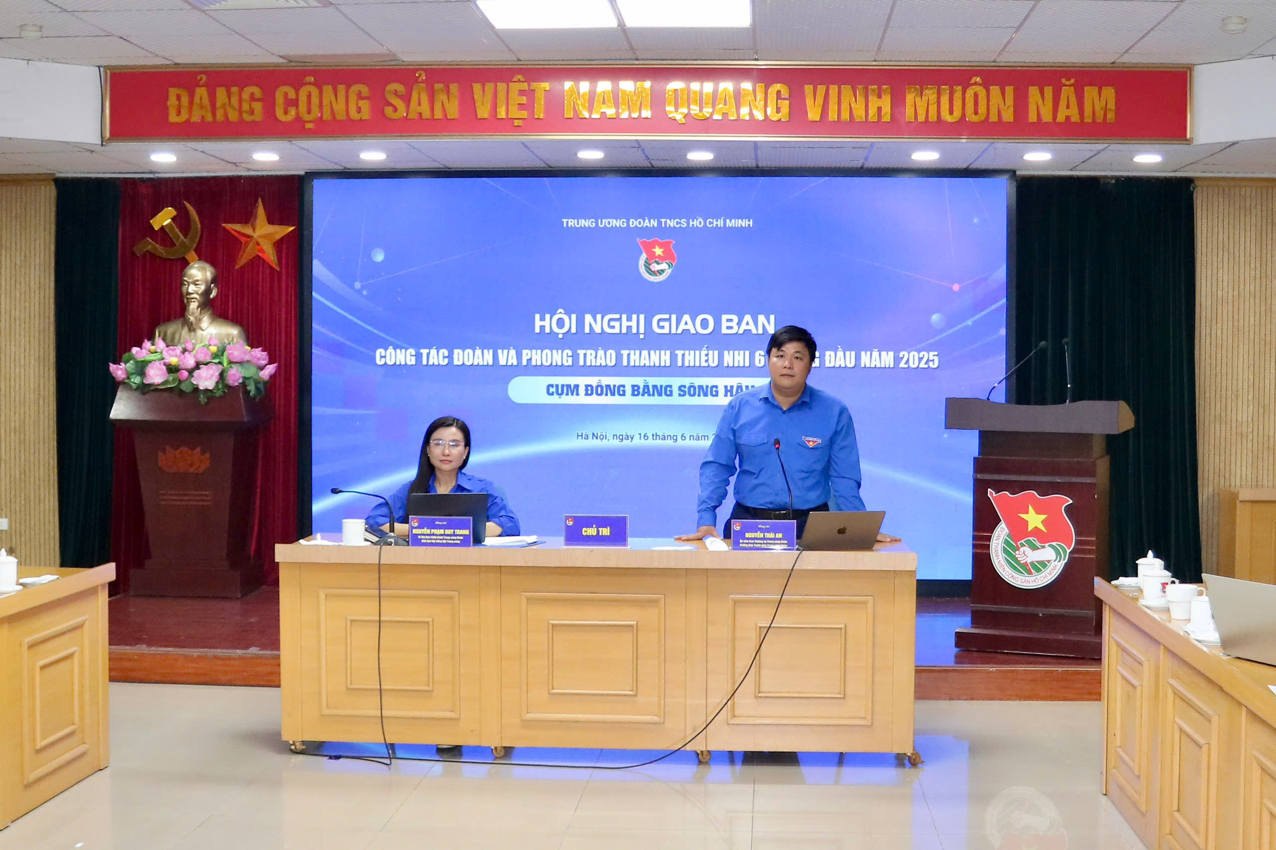 Dự và chủ trì hội nghị có đồng chí Nguyễn Phạm Duy Trang, Bí thư Trung ương Đoàn, Chủ tịch Hội đồng đội Trung ương; đồng chí Nguyễn Thái An, Uỷ viên Ban Thường vụ, Trưởng Ban Tuyên giáo Trung ương Đoàn; tham dự hội nghị còn có các đồng chí đại diện lãnh đạo các Ban, đơn vị Trung ương Đoàn; Thường trực các tỉnh, thành đoàn, Chánh Văn phòng, Trưởng Ban phong trào, Ban xây dựng Đoàn của các tỉnh, thành đoàn; Bí thư Đoàn cấp huyện là Ủy viên Ban Thường vụ Đoàn cấp tỉnh.