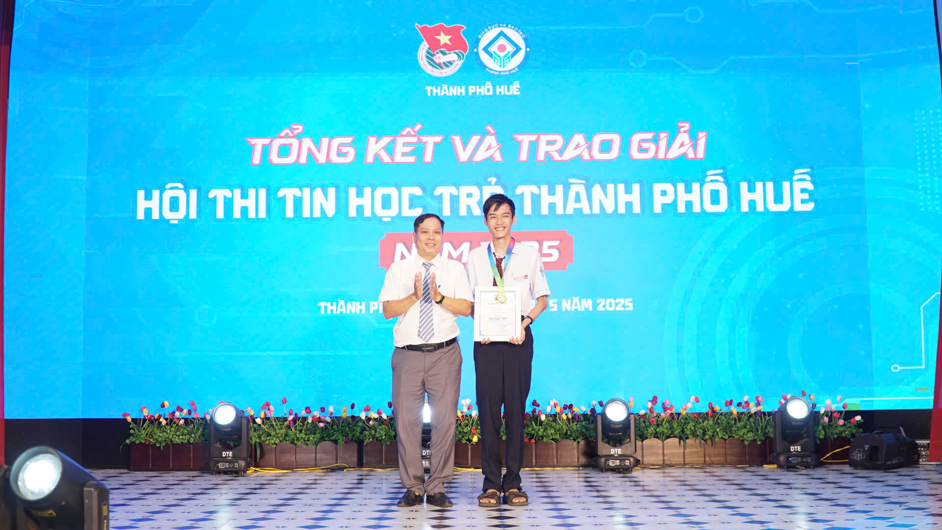 Đối với phần thi thuyết minh, trình bày sản phẩm sáng tạo, giải Nhất Bảng D1 (dành cho học sinh Tiểu học) đã thuộc về em Nguyễn Hữu Nhật Minh và Nguyễn Minh Thành, Tiểu học Thủy Biều với đề tài “Vui học toán cùng Scratch”; giải Nhất Bảng D2 (dành cho học sinh khối Trung học cơ sở) đã thuộc về em Lê Đức Phúc Hoàng và Lê Phương Thảo, Trường THCS Lê Hồng Phong với đề tài “Minh họa một số thuật toán và các cấu trúc lệnh trong chương trình Tin học lớp 6 và Tin học lớp 7”; giải Nhất Bảng D3 (dành cho học sinh khối Trung học phổ thông) đã thuộc về em Võ Tấn Kiệt và Phạm Thị Giang (Trung tâm GDNN-GDTX Quận Thuận Hóa) với đề tài “Bảo tàng lịch sử ảo 12 tích hợp trí tuệ nhân tạo hỗ trợ ôn thi tốt nghiệp THPT”.