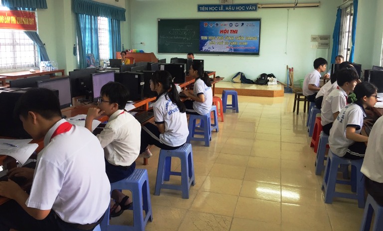 Các thí sinh tham dự Hội thi Tin học trẻ tại các điểm thi trong toàn tỉnh