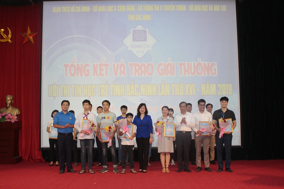 Đ/c Đào Hồng Lan, Ủy viên dự khuyết Ban Chấp hành Trung ương Đảng, Phó Bí thư Tỉnh ủy; Đ/c Nguyễn Văn Phong, Phó Chủ tịch Ủy ban Nhân dân tỉnh trao giải cho các thí sinh đạt giải nhất hội thi tin học trẻ tỉnh Bắc Ninh lần thứ XVI năm 2019