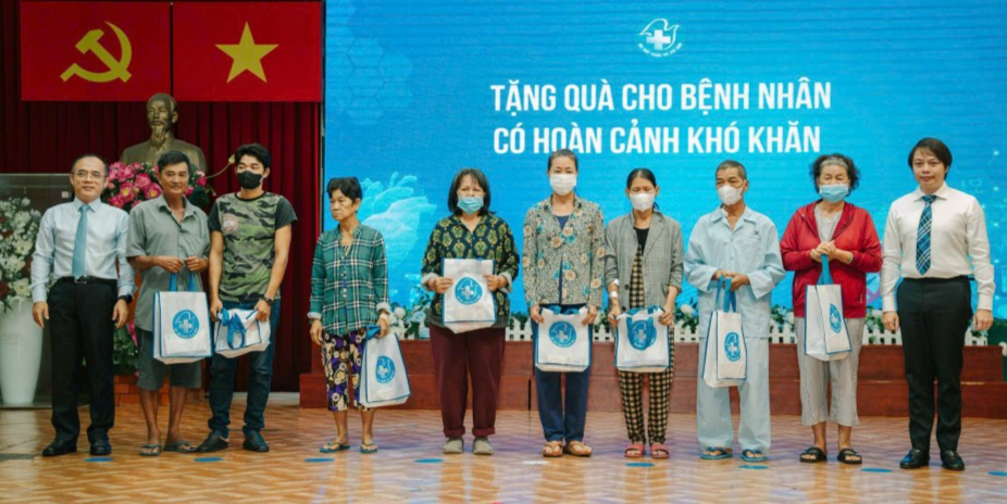 Ban tổ chức trao tặng 10 phần quà cho bệnh nhân có hoàn cảnh khó khăn đang điều trị tại Bệnh viện Thống Nhất.