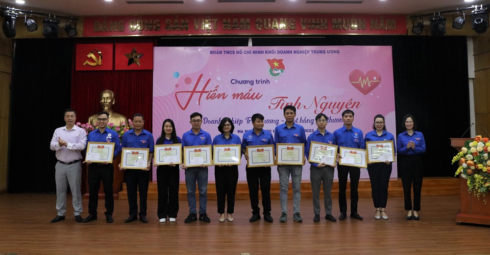 Nhân dịp này, Ban Thường vụ Đoàn Khối đã trao tặng Bằng khen cho 03 tập thể và 14 cá nhân đã có thành tích xuất sắc trong phong trào hiến máu tình nguyện năm 2023.