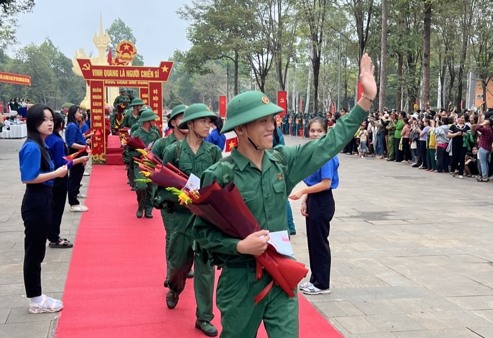 Thanh niên Bình Phước phấn khởi, hăng hái lên đường thực hiện nghĩa vụ thiêng liêng với Tổ quốc