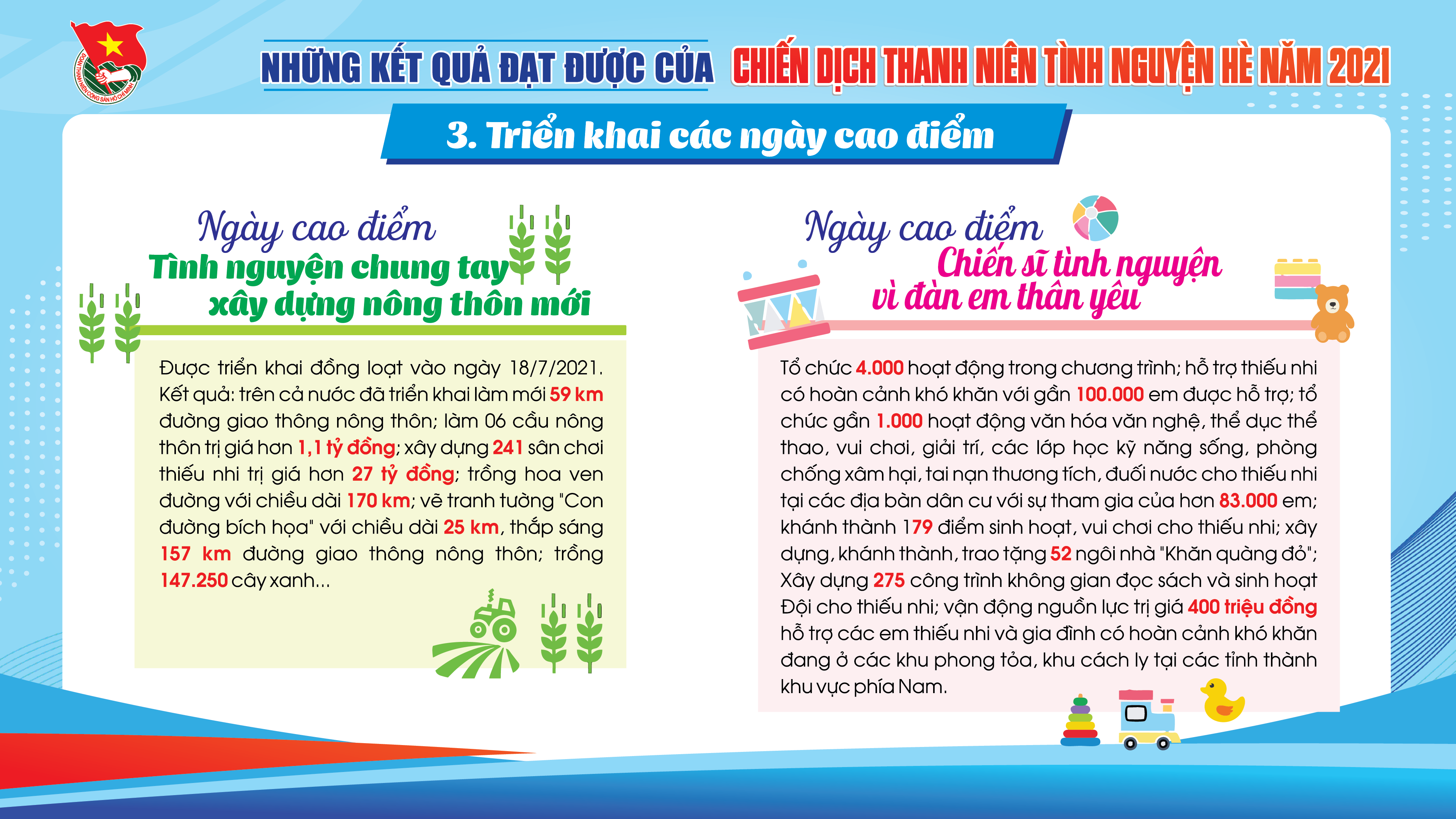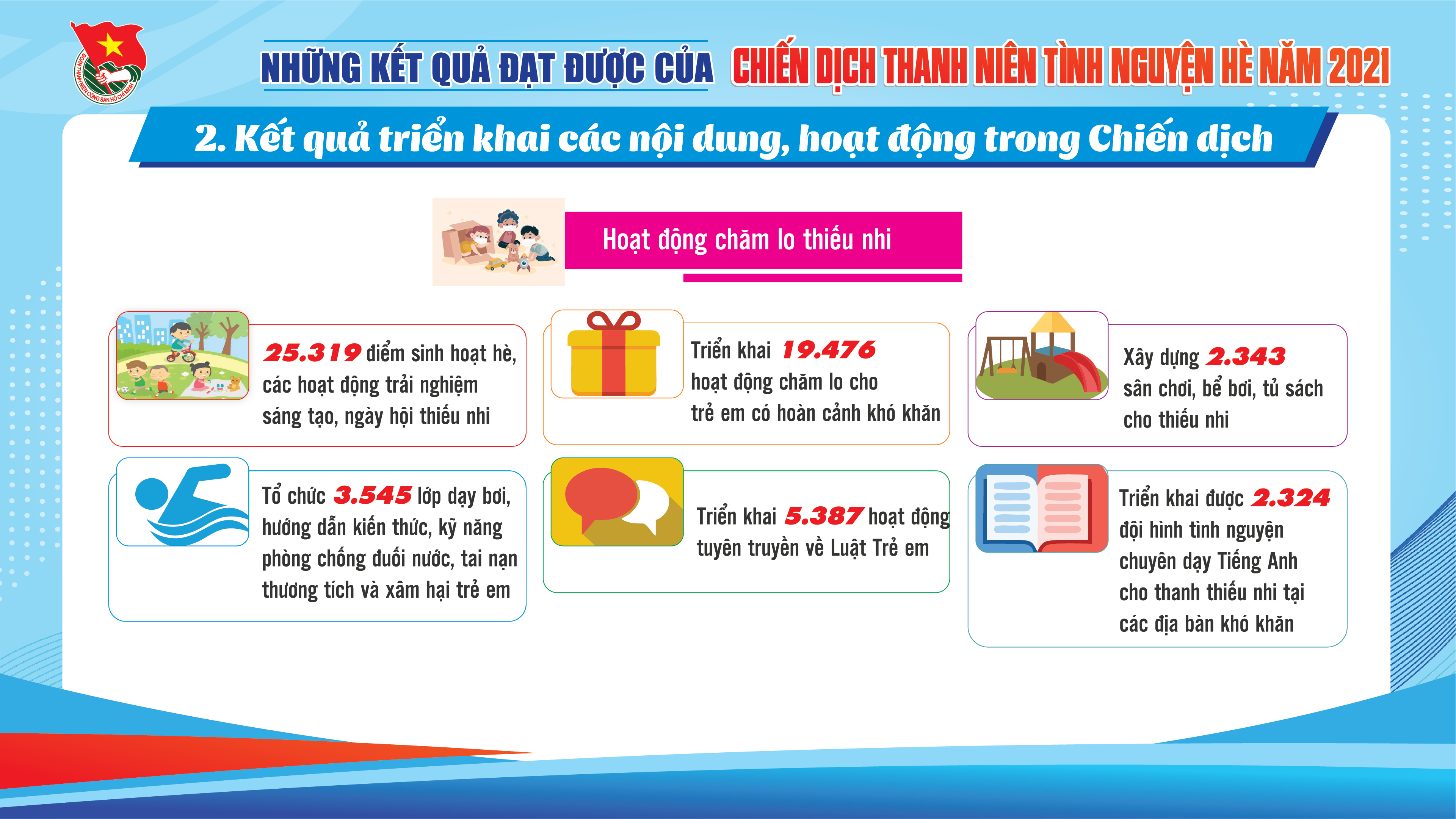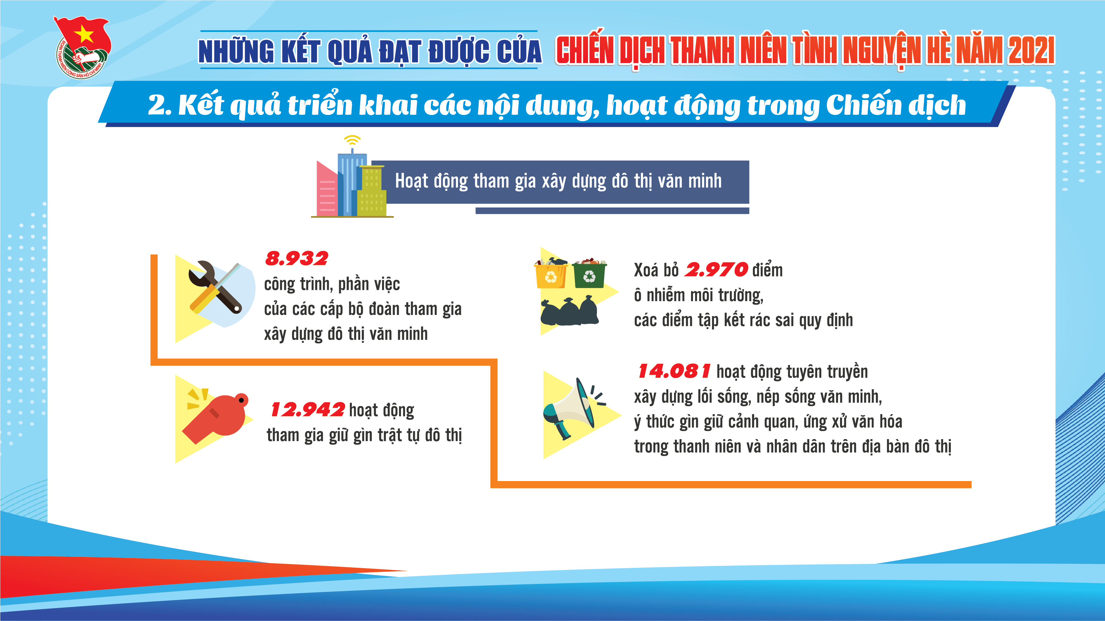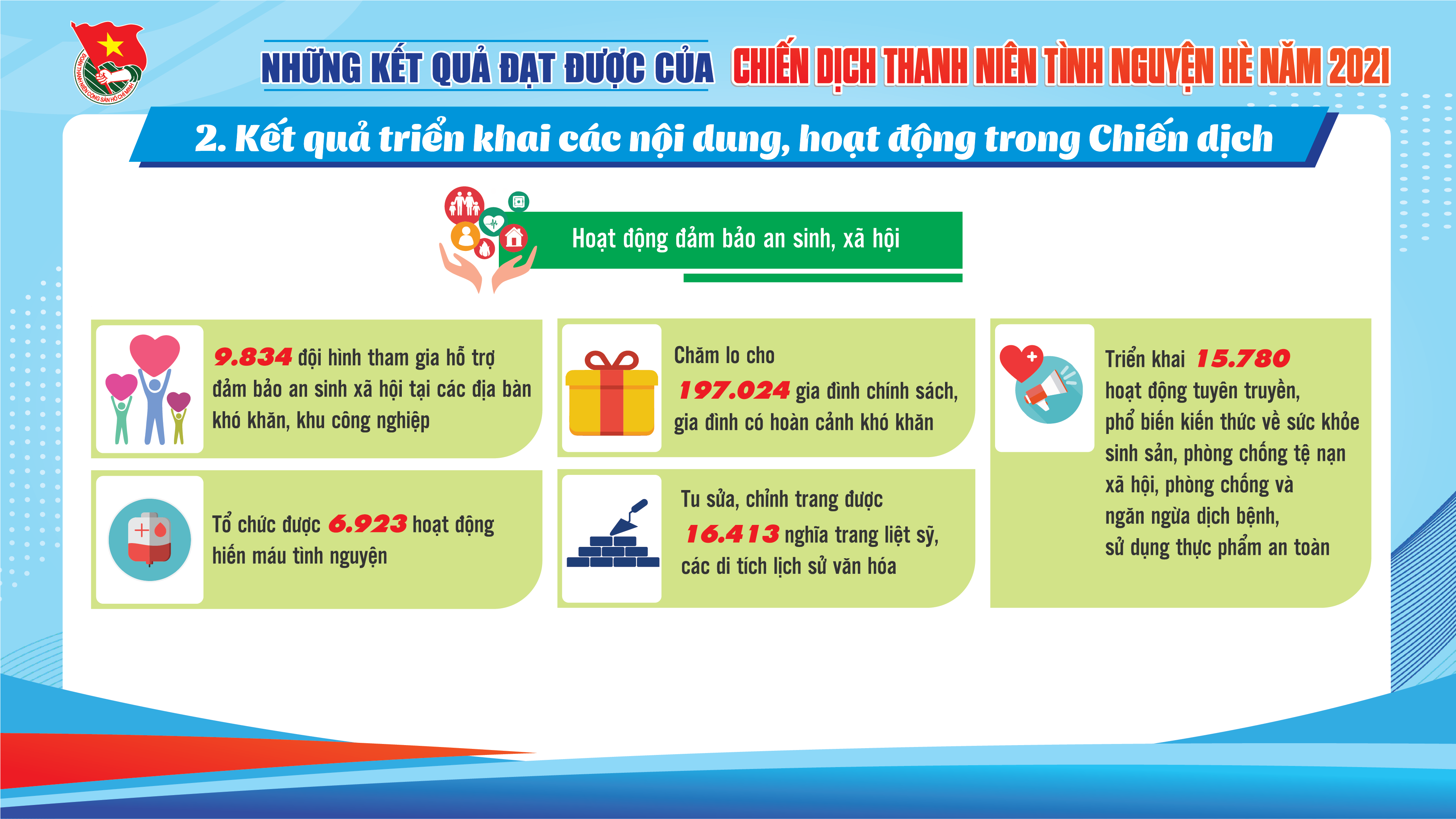 ĐTN: Sau gần 3 tháng triển khai, các cấp bộ đoàn đã thành lập 24.884 đội hình thanh niên tình nguyện thu hút 1.002.025 đoàn viên thanh niên tham gia các hoạt động của Chiến dịch Thanh niên Tình nguyện hè năm 2021.
