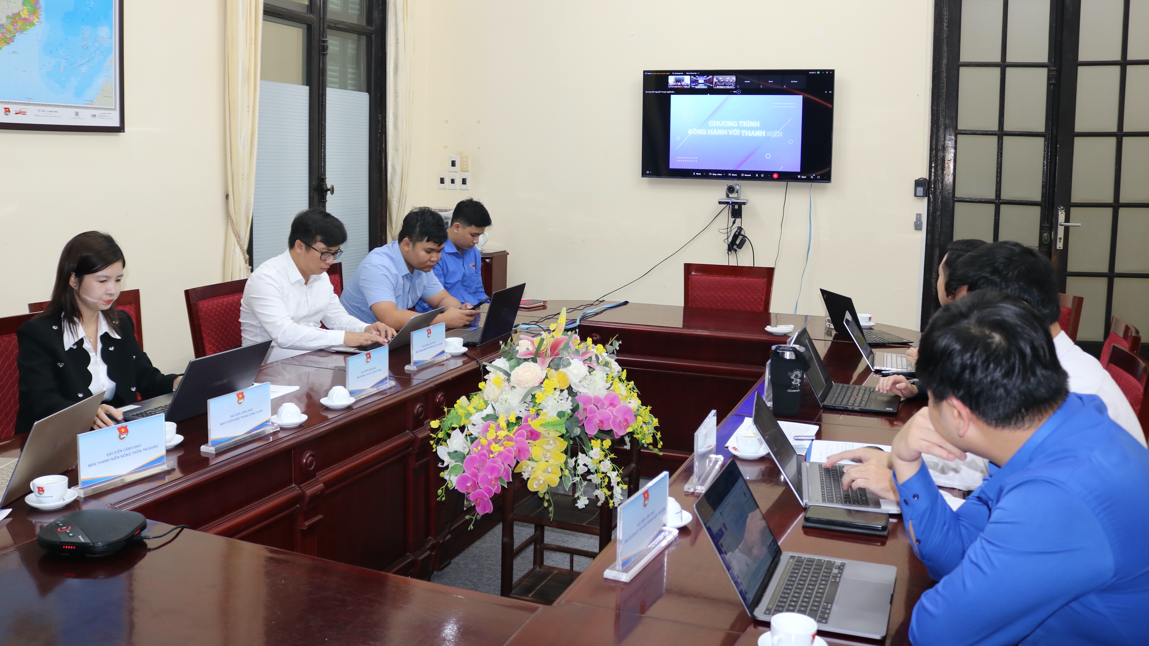 Đại diện lãnh đạo các ban Trung ương Đoàn tham dự hội nghị tại điểm cầu Trung ương