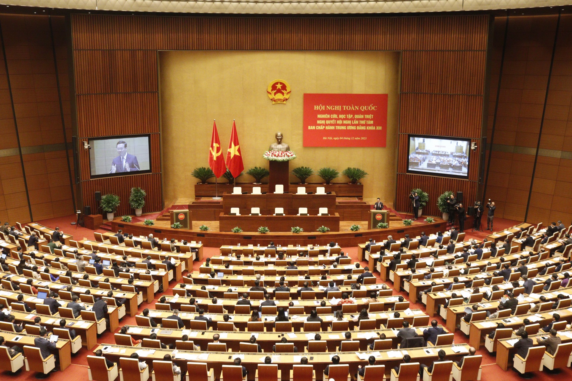 Dự Hội nghị có các đồng chí Ủy viên Bộ Chính trị, Ủy viên Ban Bí thư, Ủy viên Ban Chấp hành Trung ương Đảng khóa XIII cùng các đồng chí cán bộ chủ chốt các cấp ủy đảng, chính quyền, Mặt trận Tổ quốc Việt Nam, các tổ chức chính trị-xã hội trong toàn hệ thống chính trị và đông đảo cán bộ, đảng viên.