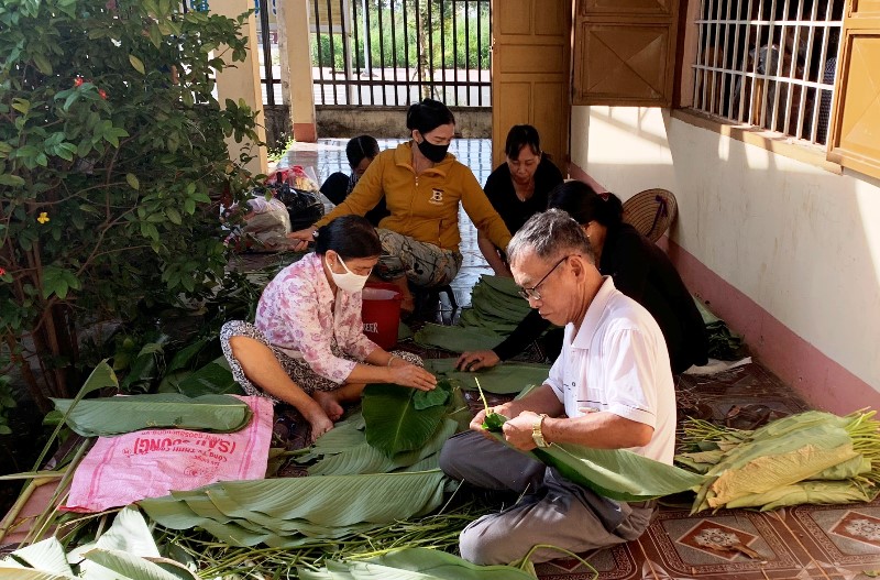 Người dân địa phương cũng tích cực tham gia gói bánh cùng các chiến sĩ