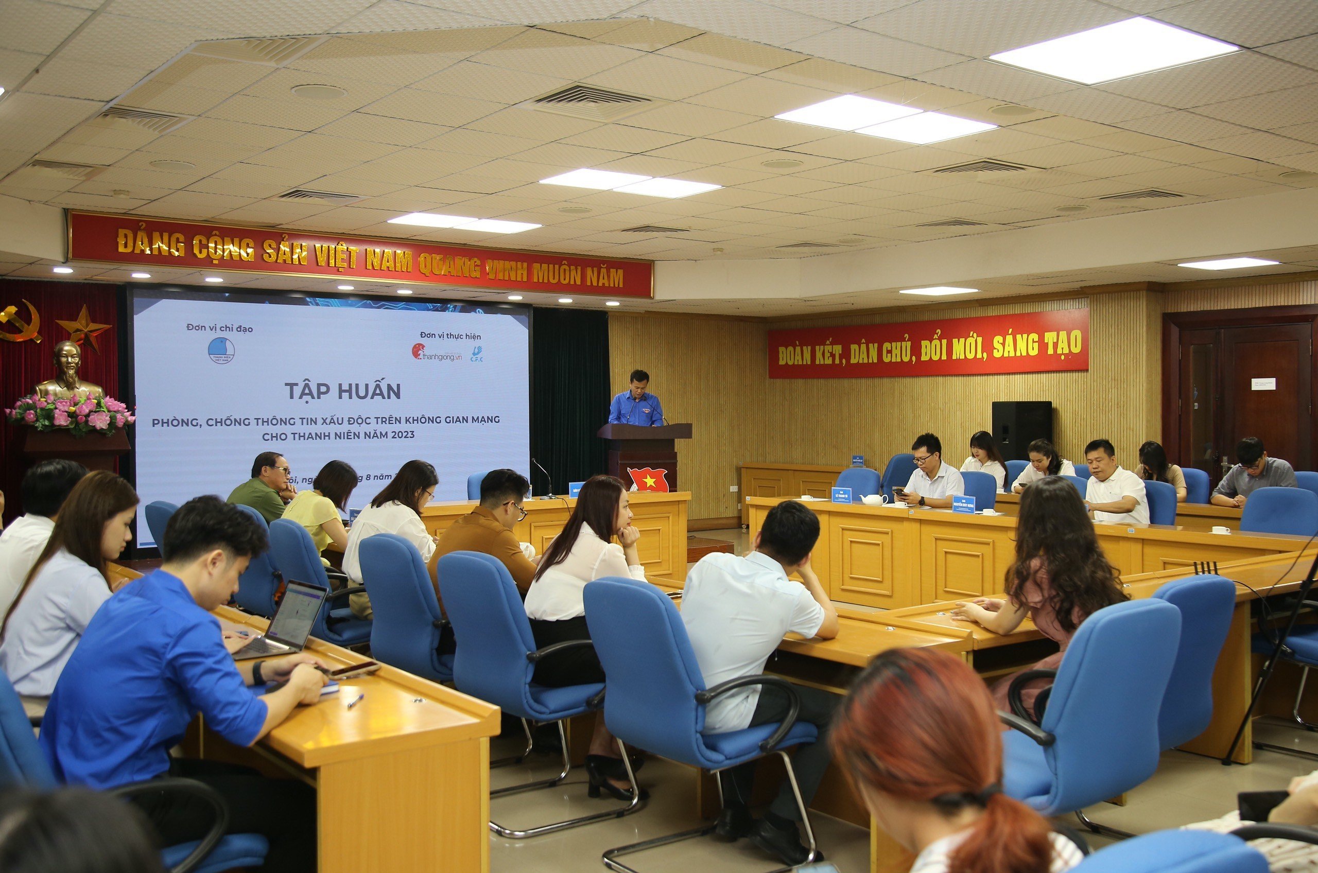 Tại lớp tập huấn, các thanh niên đã được nghe 2 chuyên đề “Phương pháp đấu tranh, phản bác, quân điểm sai trái, thù địch trên không gian mạng” của Thượng tá Đào Trung Hiếu, Chuyên gia tội phạm học, Cục Truyền thông Công an nhân dân – Bộ Công an và “Phòng chống thông tin xấu độc trực tuyến và hướng dẫn bảo mật tài khoản” của chị Nguyễn Thị Hoàng Anh, Giám đốc Trung tâm Sức khoẻ gia đình và phát triển cộng đông (CFC).