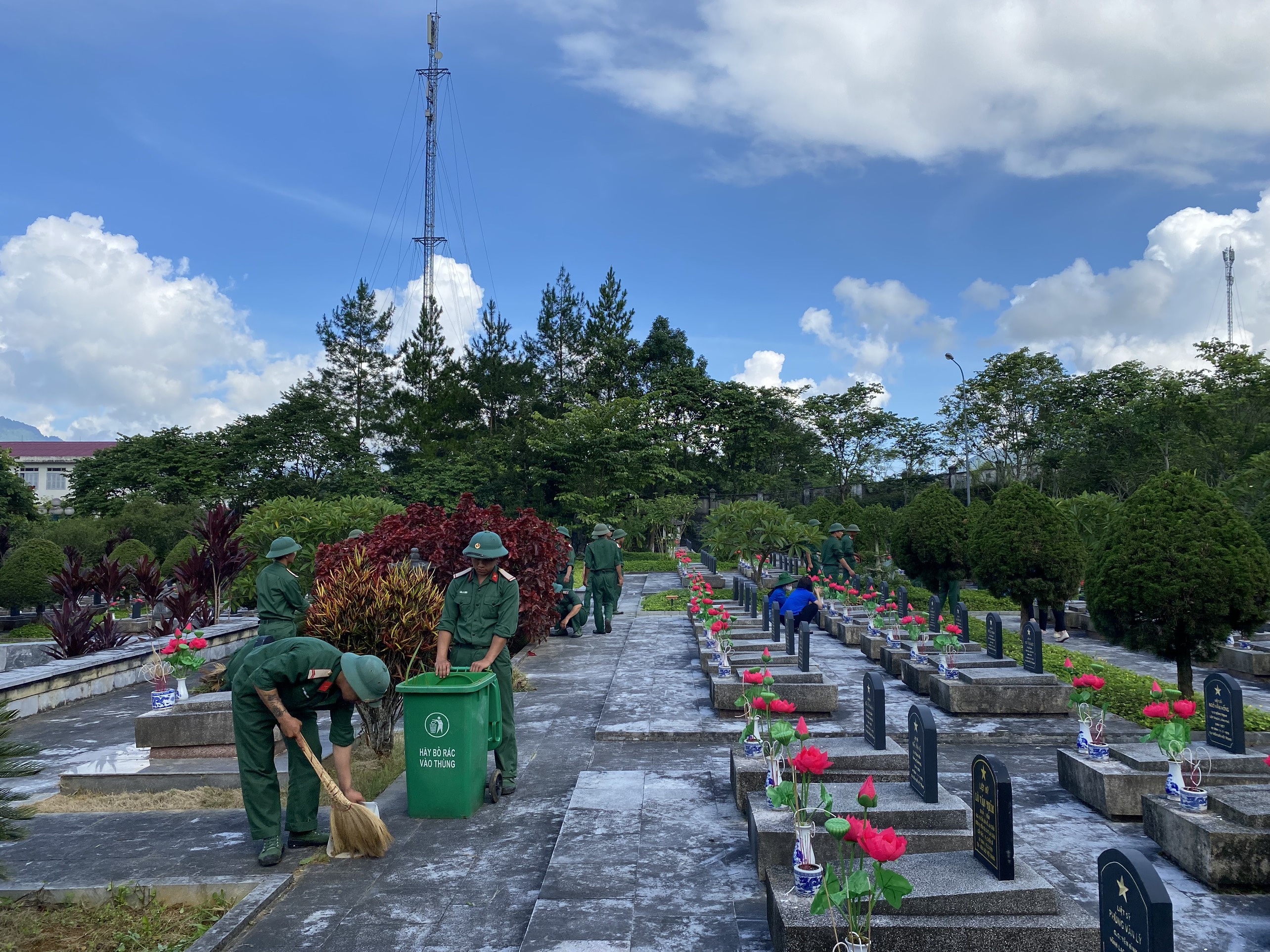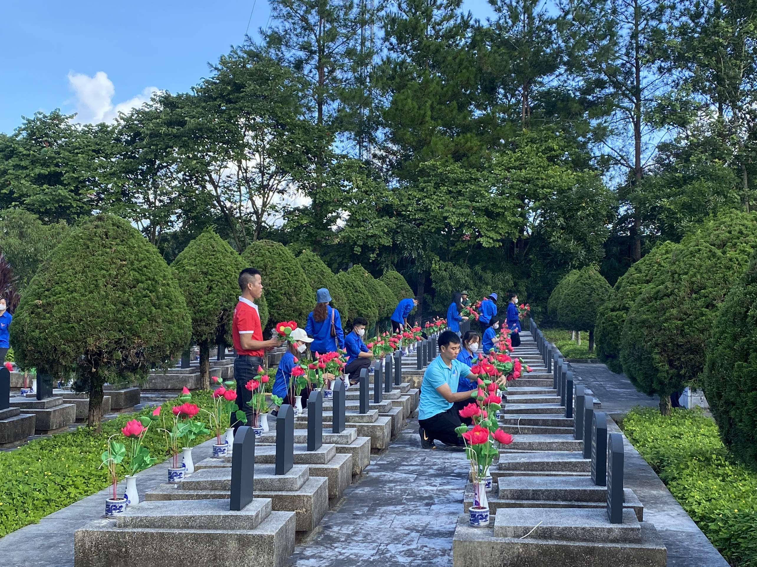 Hơn 300 ĐVTN các đơn vị: Quân sự tỉnh, Biên phòng tỉnh, Công an tỉnh, Thành đoàn, Đoàn Khối các cơ quan và doanh nghiệp tỉnh đã tiến hành vệ sinh khuôn viên Nghĩa trang Liệt sỹ tỉnh.