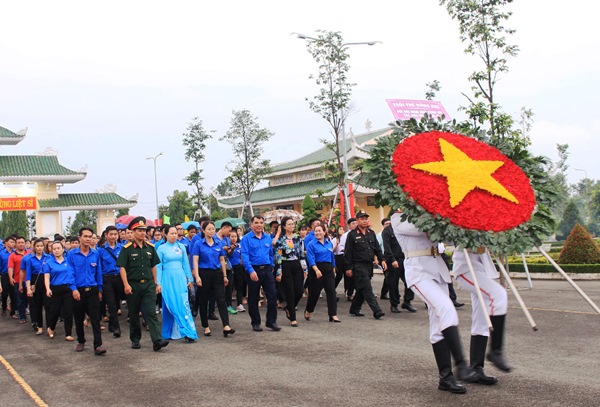 Phát biểu tại buổi lễ, Bí thư Tỉnh đoàn Nguyễn Cao Cường xúc động chia sẻ: “Để giữ vững chủ quyền dân tộc và độc lập tự do cho nhân dân, đã có biết bao thế hệ cha anh đã không tiếc máu xương, đoàn kết một lòng đi theo tiếng gọi của non sông, tạm biệt gia đình, lấy máu đào viết đơn được lên đường nhập ngũ, cầm súng ra mặt trận “quyết tử để tổ quốc quyết sinh”, “vào sinh ra tử” dâng hiến cả tuổi thanh xuân dù có phải “máu trộn bùn non” thì gan vẫn không núng, chí chẳng mòn, và cả “Những đồng chí thân chôn làm giá súng. Đầu bịt lỗ châu mai”. Sự hy sinh anh dũng của những người con kiên trung, máu đào của các anh, các chị đã tô thắm cho lá cờ đỏ của Tổ quốc hôm nay tung bay trên bầu trời tự do. Độc lập dân tộc cho thế hệ hôm nay là sự đánh đổi, mất mát, đau thương của biết bao gia đình. Có nỗi đau nào hơn thế, nỗi đau của biết bao gia đình mãi mãi mất đi người thân yêu nhất của mình.
