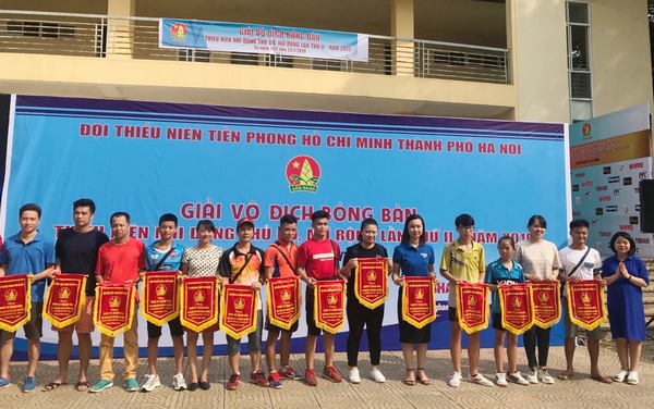 Đồng chí Chu Hồng Minh, Ủy viên Ban chấp hành Trung ương Đoàn, Phó Bí thư Thành đoàn, Chủ tịch Hội Sinh viên thành phố Hà Nội tặng cờ cho đơn vị tham gia giải Vô địch bóng bàn thiếu niên, nhi đồng Thủ đô mở rộng lần thứ II năm 2019