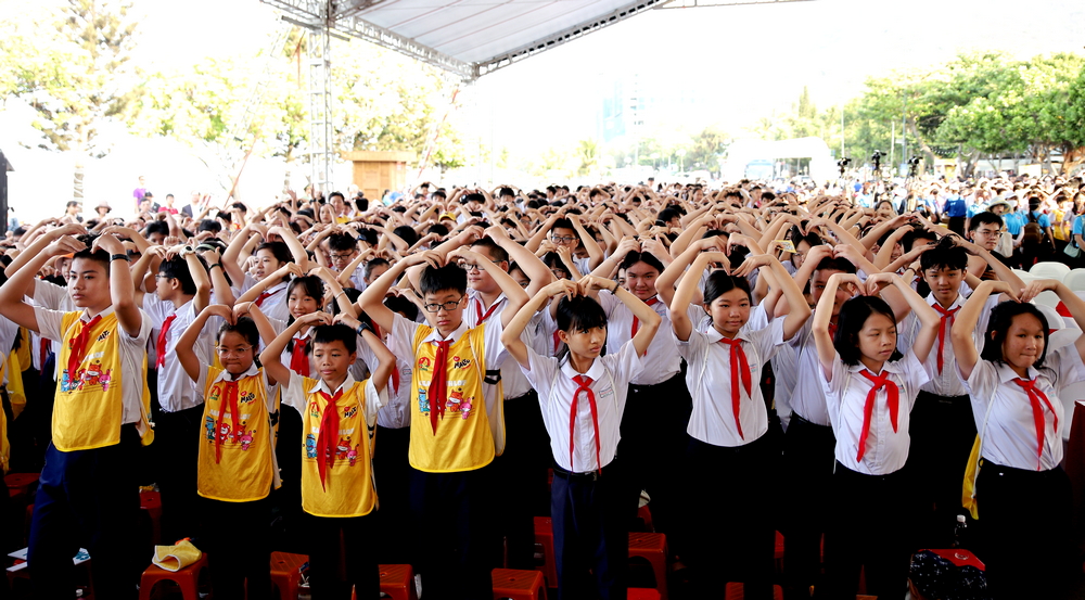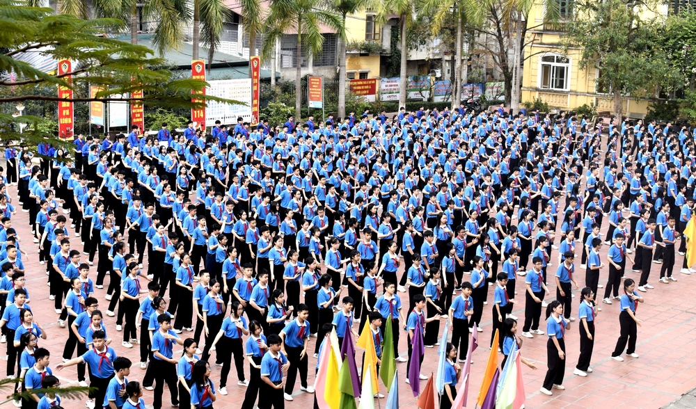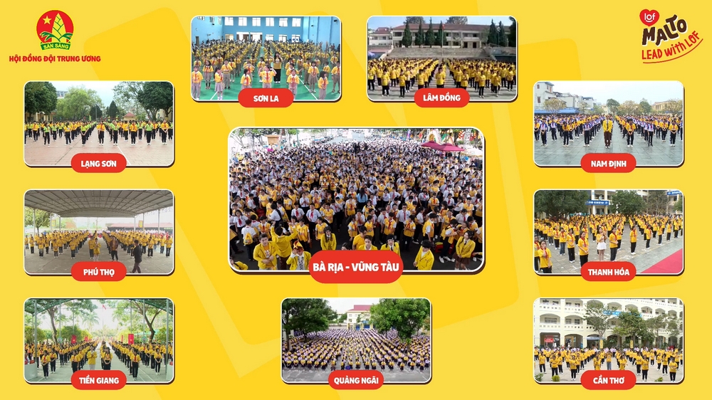 Hơn 5 triệu em đội viên, thiếu nhi của hơn 10 ngàn trường THCS trên cả nước đồng diễn bài “Tiến bước dưới cờ Đoàn và Lof Malto - Khi nào mình lớn”
