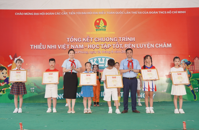 Nhân dịp này, Hội đồng Đội Trung ương trao tặng Công trình măng non “Xây dựng sân chơi thiếu nhi” và hàng cây “Vì một Việt Nam xanh” cho Trường Tiểu học Tràng Cát, quận Hải An, thành phố Hải Phòng, trị giá hơn 50 triệu đồng. Bên cạnh đó, Ban tổ chức đã trao tặng hơn 1.500 phần quà cho các em thiếu nhi tham gia chương trình./.