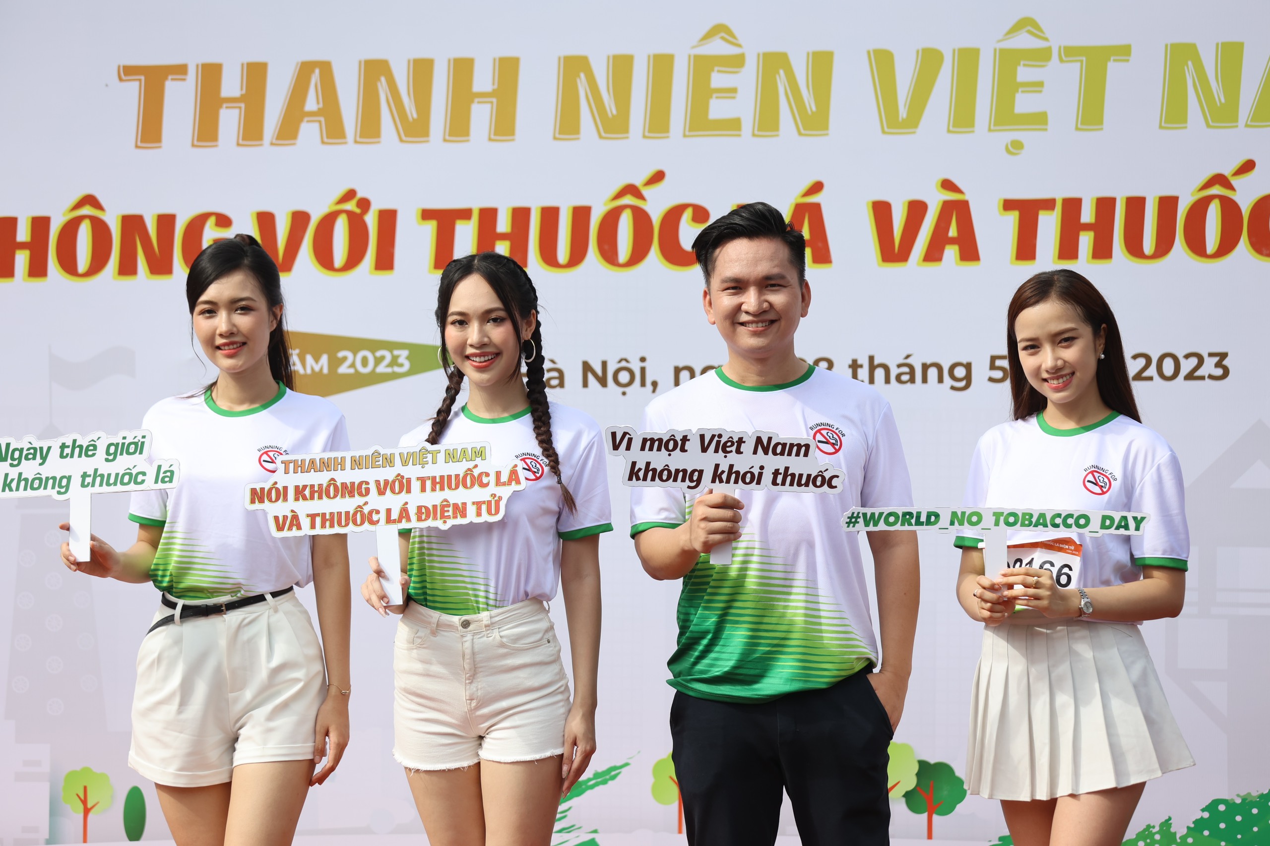 MC Hạnh Phúc, bạn Trịnh Thùy Linh (Á hậu 1 Hoa hậu Việt Nam 2022); bạn Nguyễn Ngọc Mai (Người đẹp nhân ái, Top 5 Hoa hậu Việt Nam năm 2022); bạn Nguyễn Thị Thanh Tâm (Người đẹp truyền thông, Top 5 Hoa hậu Việt Nam năm 2022) cùng chung tay truyền tải thông điệp của chiến dịch “Thanh niên Việt Nam nói không với thuốc lá và thuốc lá điện tử năm 2023”.