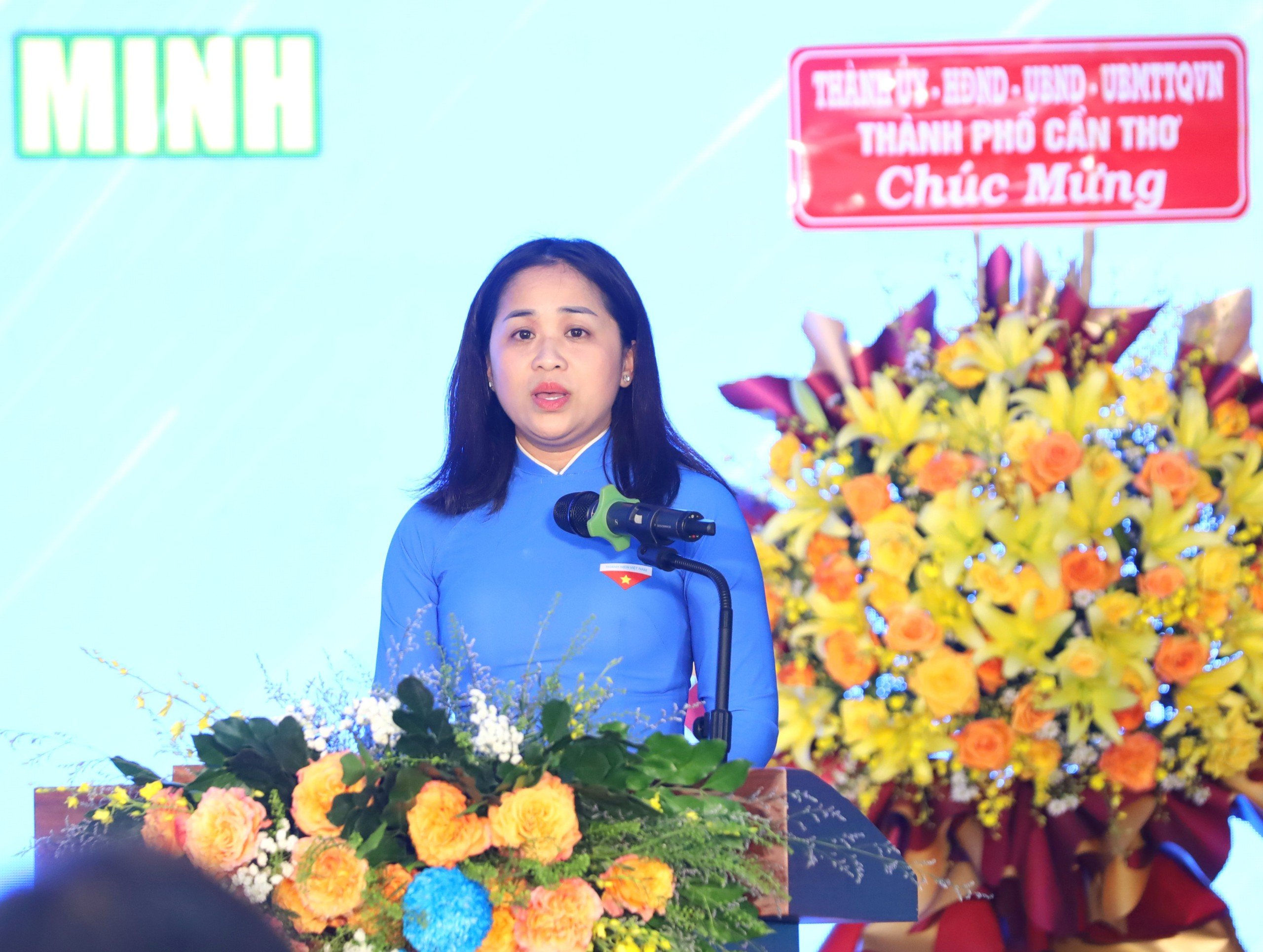 Tại buổi họp mặt, đồng chí Lư Thị Ngọc Anh - Bí thư Thành đoàn Cần Thơ phát biểu ôn lại truyền thống 93 năm vẻ vang của Đoàn TNCS Hồ Chí Minh (26/03/1931-26/03/2024).