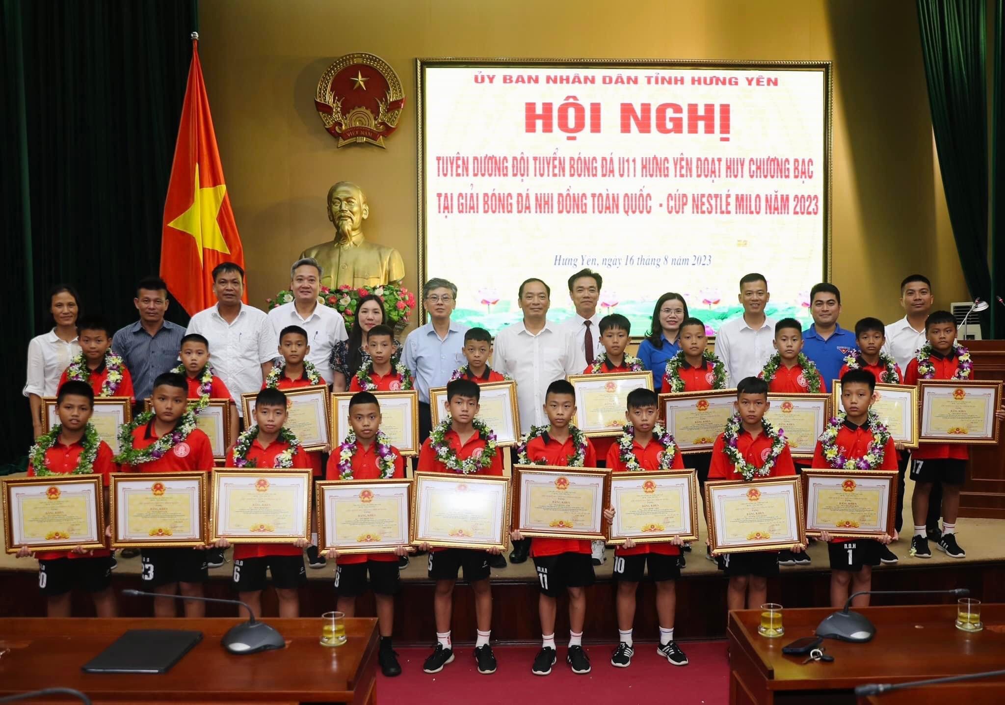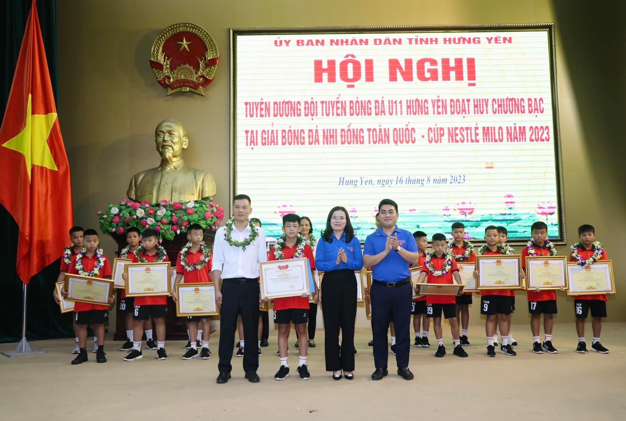 Nhân dịp này, tập thể đội bóng đá U11 Hưng Yên và các cá nhân của đội bóng được Chủ tịch UBND tỉnh và Tỉnh đoàn tặng Bằng khen; Trung tâm đào tạo bóng đá trẻ PVF – Bộ Công an trao tiền thưởng tặng tập thể đội bóng đá U11 Hưng Yên.