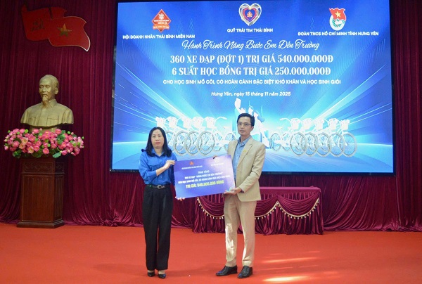 ĐTN: Từ ngày 15-18/11/2025, Ban Thường vụ Tỉnh đoàn Hưng Yên phối hợp với Hội Doanh nhân Thái Bình miền Nam tổ chức Hành trình “Nâng bước em đến trường”.