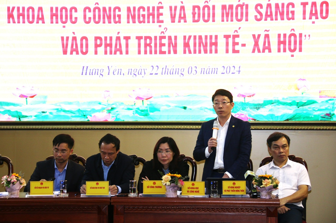 Tại hội nghị, 26 ĐVTN đặt câu hỏi, nêu ý kiến, đề xuất với tỉnh và các cơ quan chức năng, tập trung vào 9 nhóm vấn đề như: Ứng dụng khoa học công nghệ trong chế biến, tiêu thụ, quảng bá sản phẩm nông nghiệp; cơ chế chính sách hỗ trợ TN tiếp cận, ứng dụng khoa học công nghệ vào sản xuất, kinh doanh; giải pháp hướng nghiệp cho học sinh và cơ chế liên kết đào tạo nguồn nhân lực chất lượng cao và thu hút các dự án công nghiệp công nghệ cao... Trong đó, đại diện TN Thành đoàn Hưng Yên quan tâm đến việc tỉnh đã có những cảnh báo như thế nào về mức độ cạnh tranh của doanh nghiệp, nhất là doanh nghiệp trẻtrong thời đại công nghệ số. Đại diện TNhuyện Kim Động đề nghị tỉnh cho biết những biện pháp nhằm đưa ứng dụng CĐS để tạo sự liên kết giữa sản xuất và tiêu thụ sản phẩm hàng hóa, giúp đưa sản phẩm hàng hóa nói chung, hàng hóa của doanh nghiệp, HTX do TN làm chủlên các sàn thương mại điện tử. Huyện đoàn Ân Thi tìm hiểu việc áp dụng nền tảng kinh tế số vào sản xuất, phát triển chuỗi giá trị, nhất là giá trị các sản phẩm OCOP, sản phẩm thủ công của các làng nghề truyền thống...
