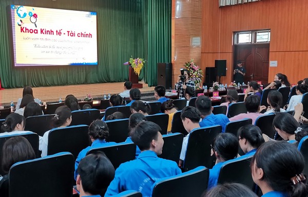 Học sinh tham gia trải nghiệm tại khoa kinh tế tài chính, tin học ngoại ngữ