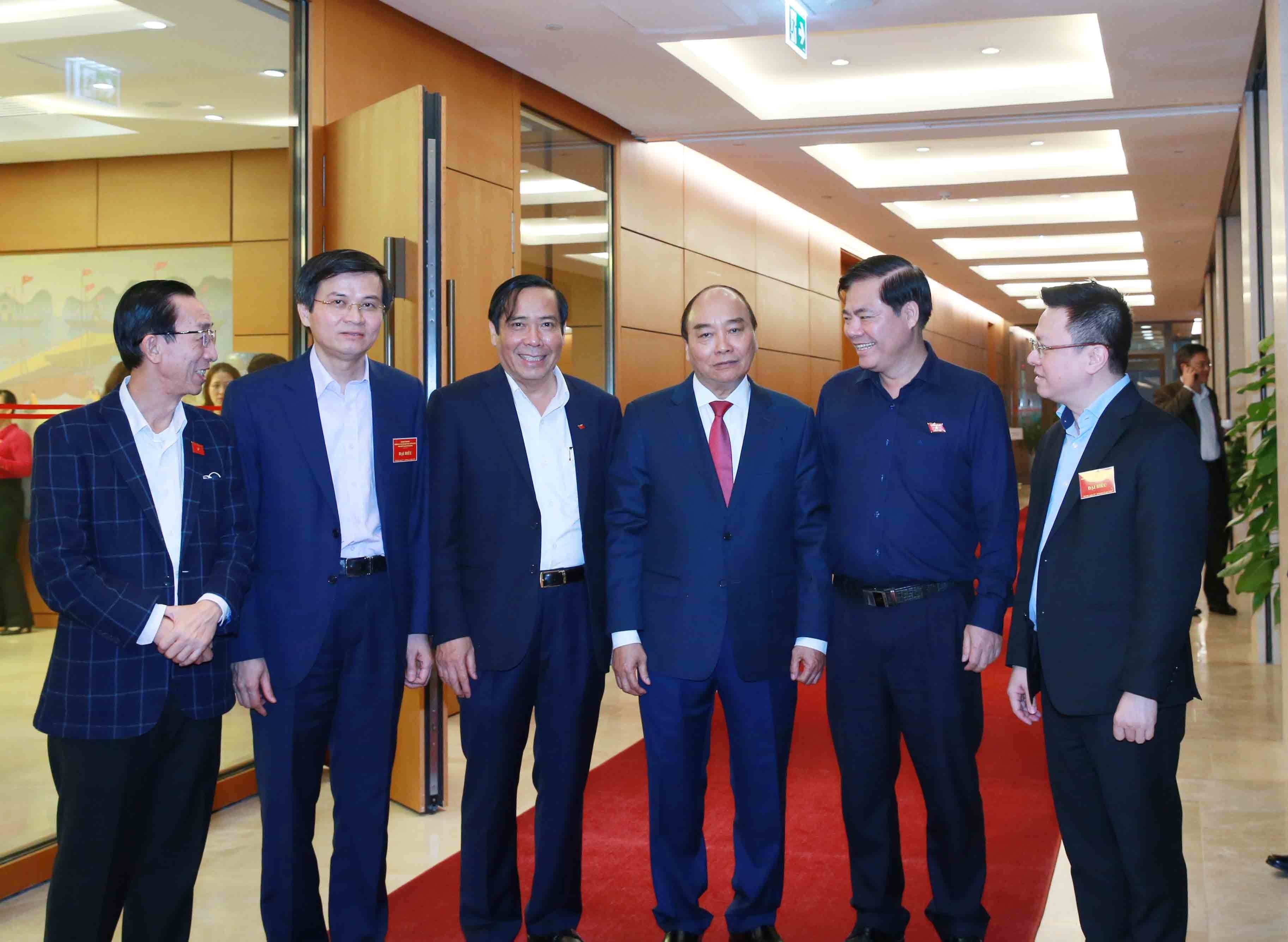 Ủy viên Bộ Chính trị, Thủ tướng Chính phủ Nguyễn Xuân Phúc với các đại biểu dự Hội nghị trực tuyến toàn quốc quán triệt Nghị quyết Đại hội XIII của Đảng, ngày 28-3-2021_Ảnh: TTXVN