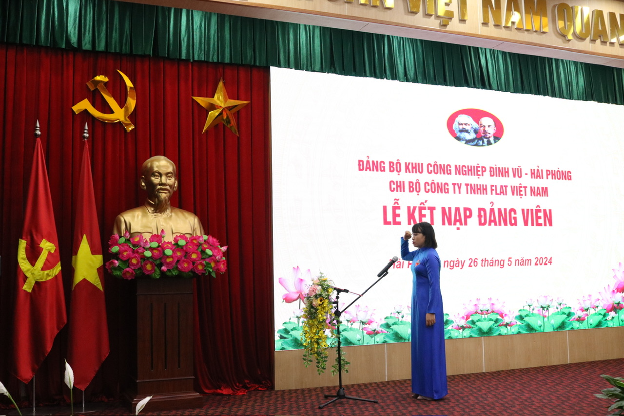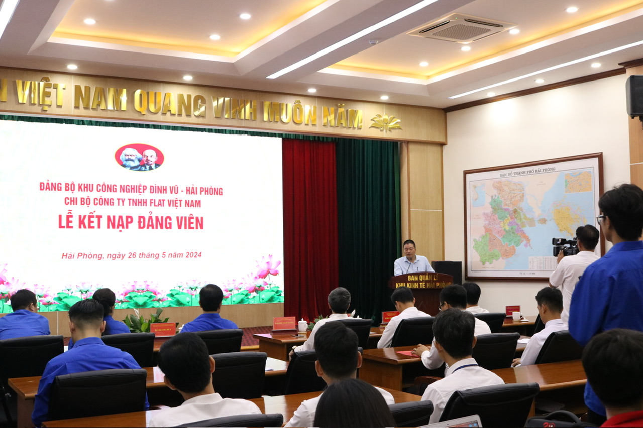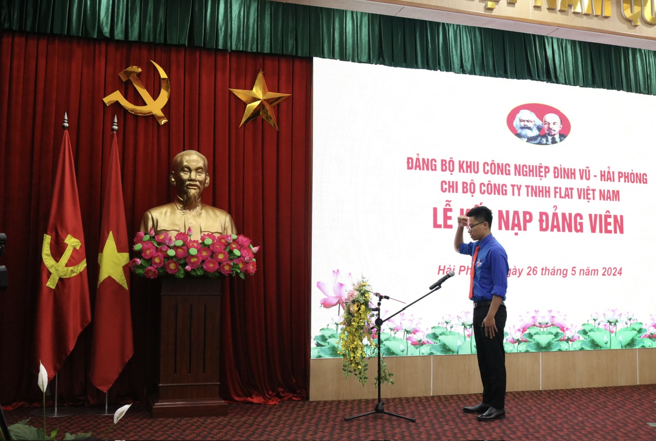 Tại chương trình, ban tổ chức đã công bố quyết định kết nạp đảng viên cho 2 quần chúng ưu tú công tác tại Công ty TNHH Flat Việt Nam gồm: đồng chí Lê Quang Hiếu (28 tuổi, quê quán TT. Minh Đức, H.Thủy Nguyên, TP. Hải Phòng) và đồng chí Phạm Thị Thành (35 tuổi, quê quán xã Quang Phục, H. Tiên Lãng, TP. Hải Phòng).