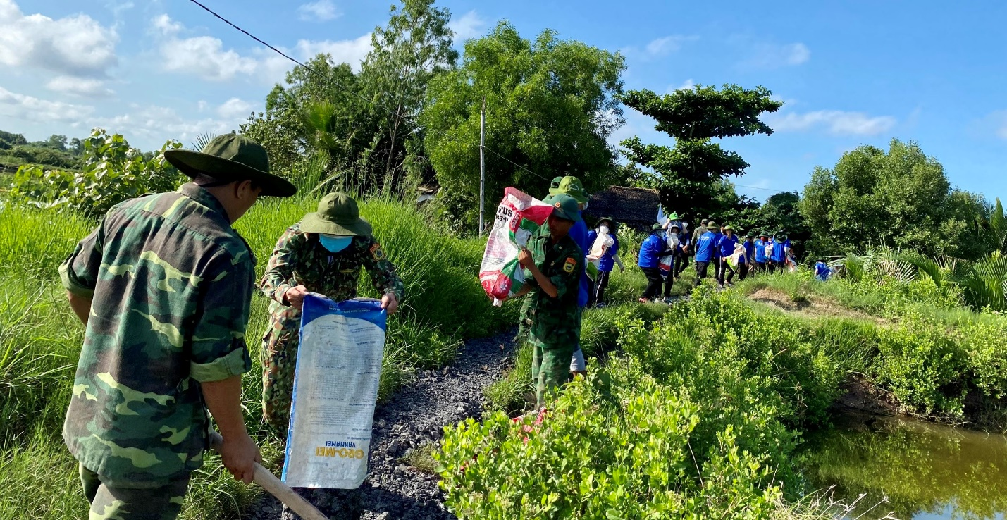 Tham gia hỗ trợ xây dựng nhà nhân ái tại huyện Cầu Kè (Nguồn ảnh: Chiến sỹ thường trực tại mặt trận Hòa Tân)